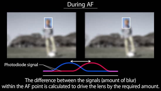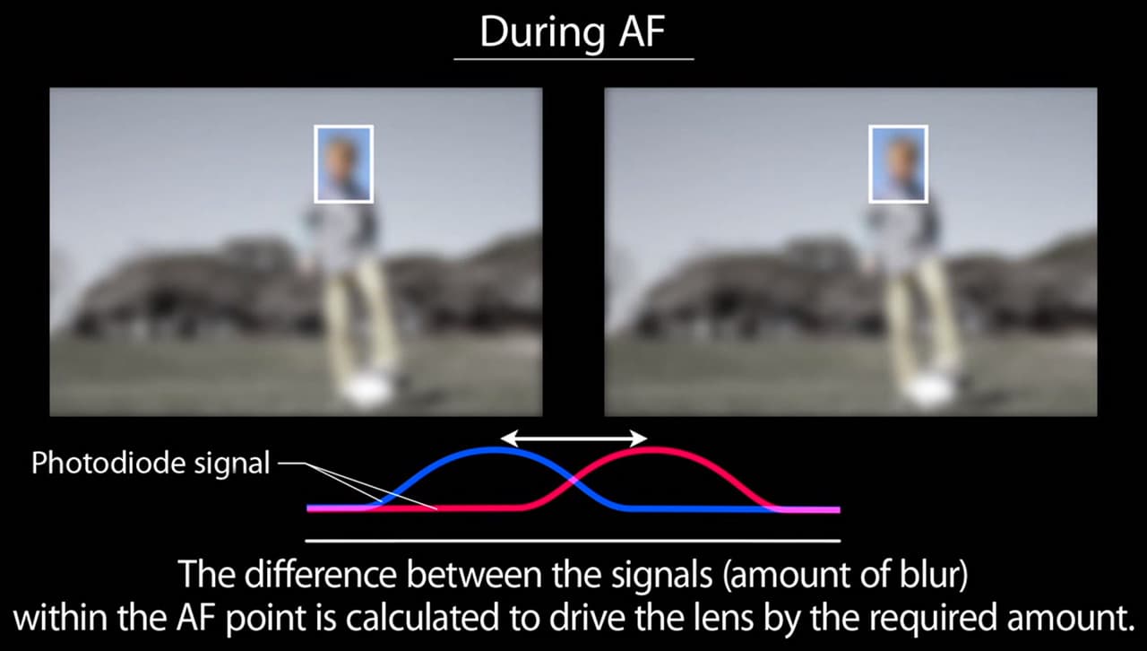 - Каждый фотодиод пары A и B дает свой сигнал для управления автофокусом.