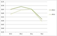 Возможно, это не окончательный вариант методики, но, похоже, уже близкий к конечному — который позволит сравнивать стабилизаторы разных камер или объективов. Как видно по графику, «обвал вероятности» от высокой 70% до средней 50% происходит на уровне 1/8 секунды. Дальше еще можно снимать, при 1/4 секунды вероятность еще близка к 50%. А при более длинных выдержках количество смазанных кадров намного больше, чем относительно резких.