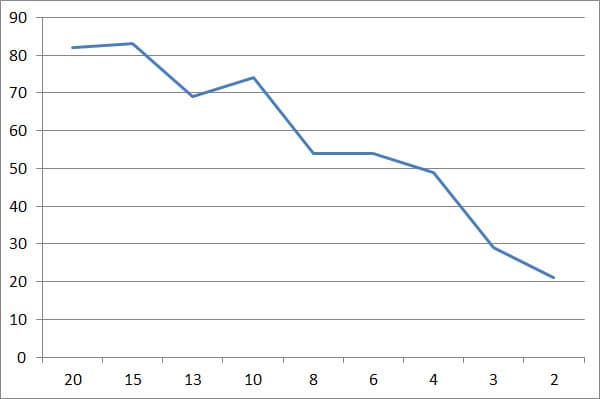 - Если можно четко разобрать нижнюю строчку, тестовая фотография получает 10 баллов из 10 возможных. Если четко можно разобрать только 9-ю строчку — 9 баллов. И так далее.