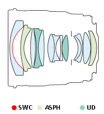 Canon EF 24mm f/1.4L II USM обладает новым просветляющим покрытием SWC, которое состоит из наночастиц размерами меньше половины длины волны видимого света. Предполагается, что они более эффективно фильтруют паразитные отражения.