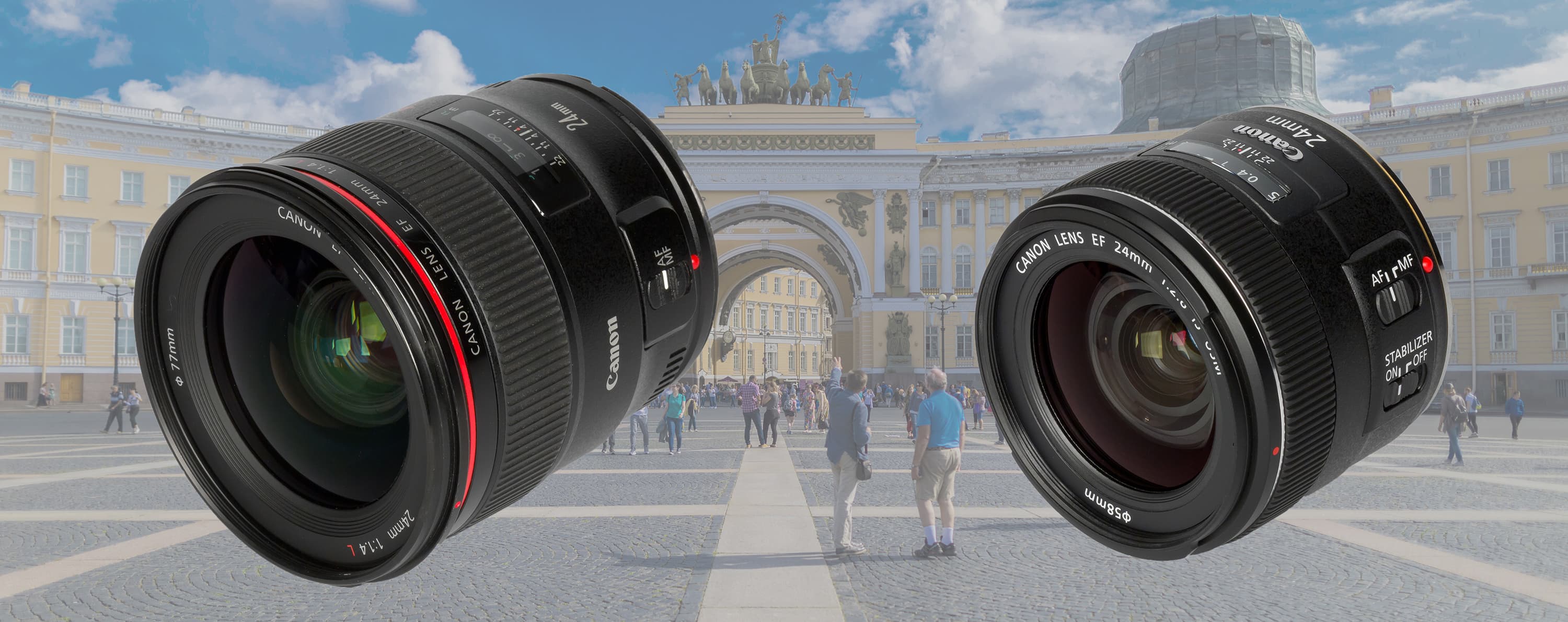 Фокусное расстояние 24 мм — минимальная граница трансфокации для большинства стандартных зум-объективов. Однако «зумы» вряд ли способны тягаться по качеству получаемого изображения с «фиксами». Поэтому в арсенале оптики многих систем есть не только объективы 24—70 мм с трансфокатором, но и отдельные 24-миллиметровые с аналогичной и более высокой светосилой. Canon выпускает несколько таких объективов, и в этом материале мы приведем результаты сравнения двух из них — «старшего» Canon EF 24mm f/1.4L II USM и «младшего» Canon EF 24mm f/2.8 IS USM.