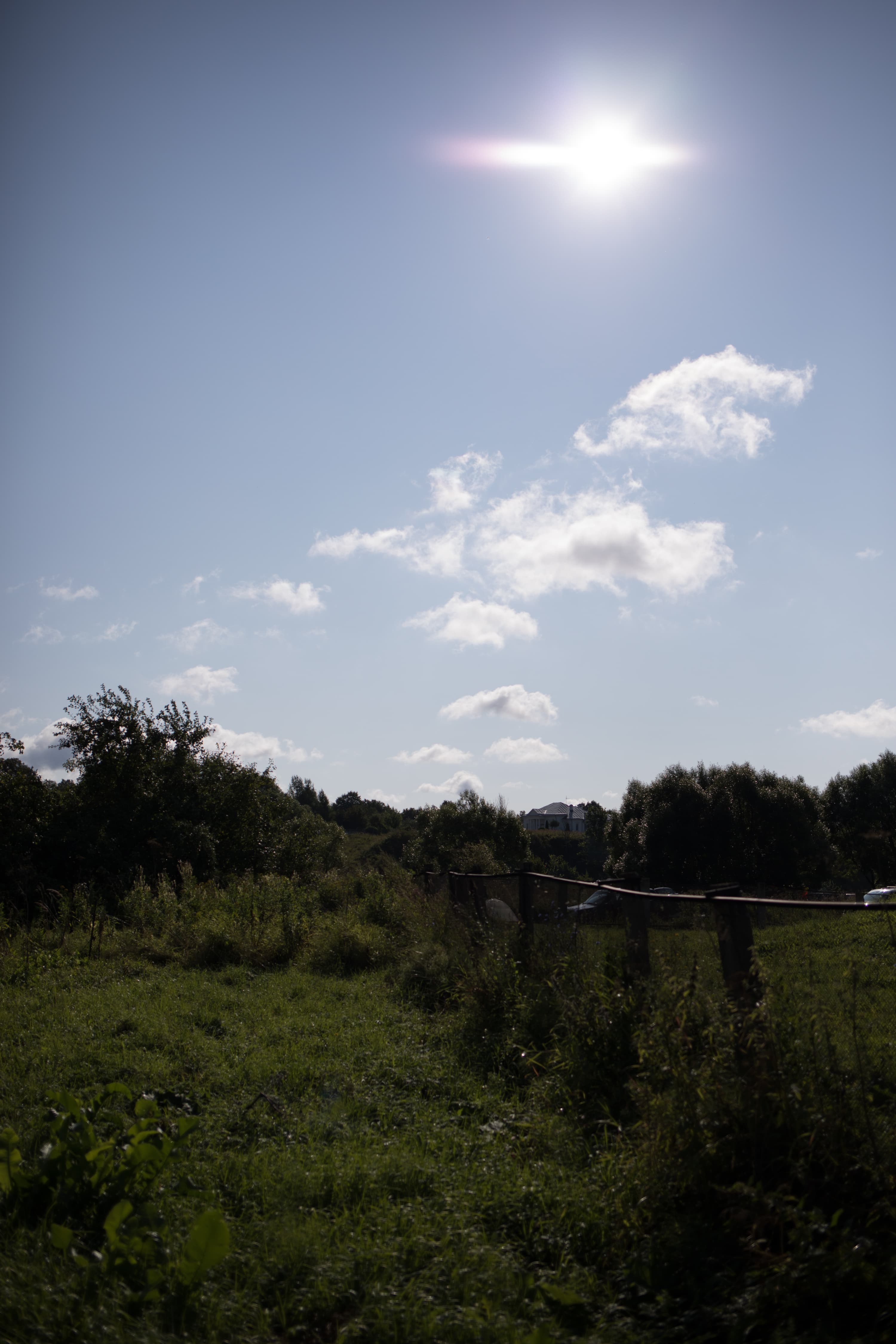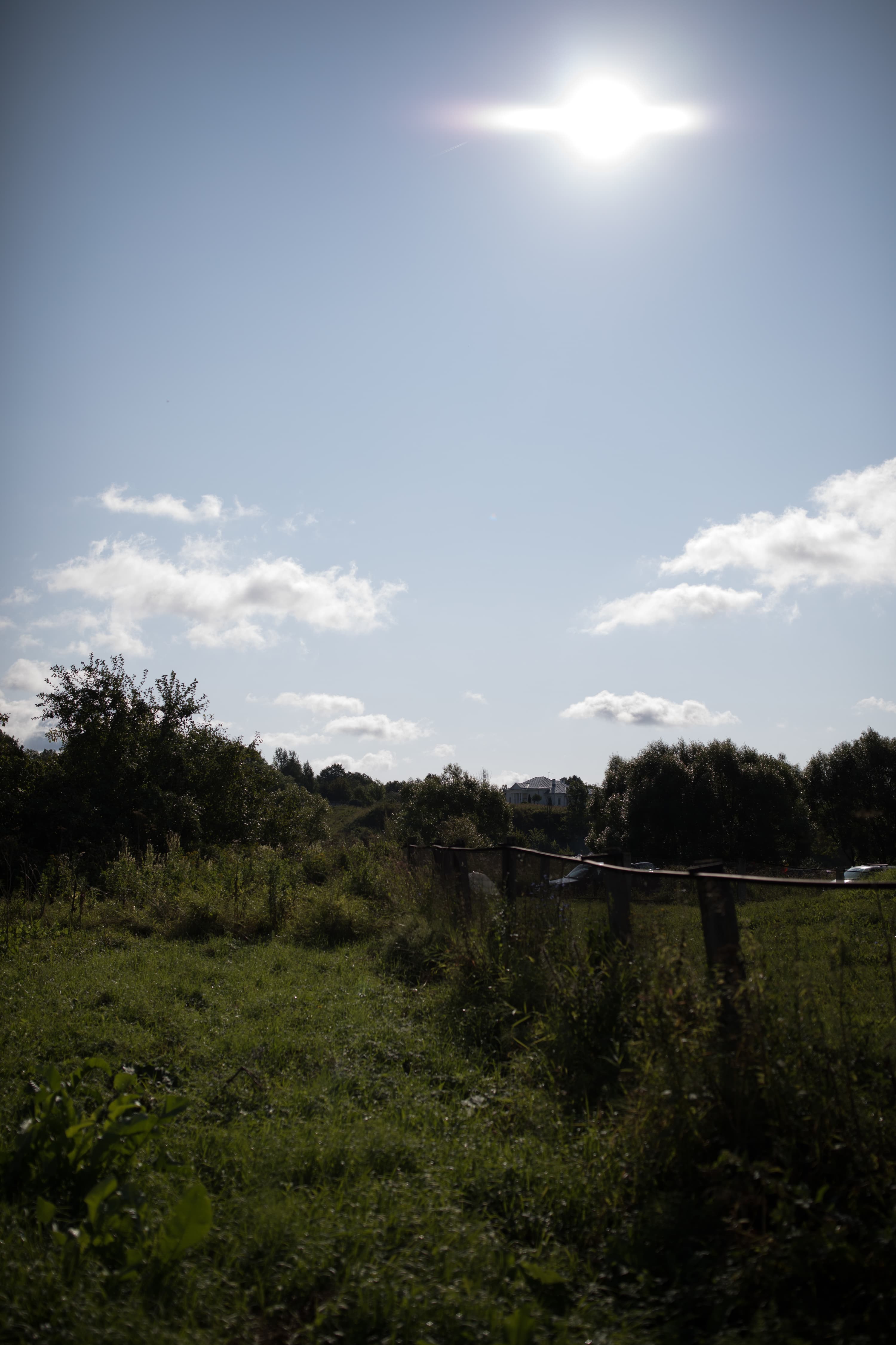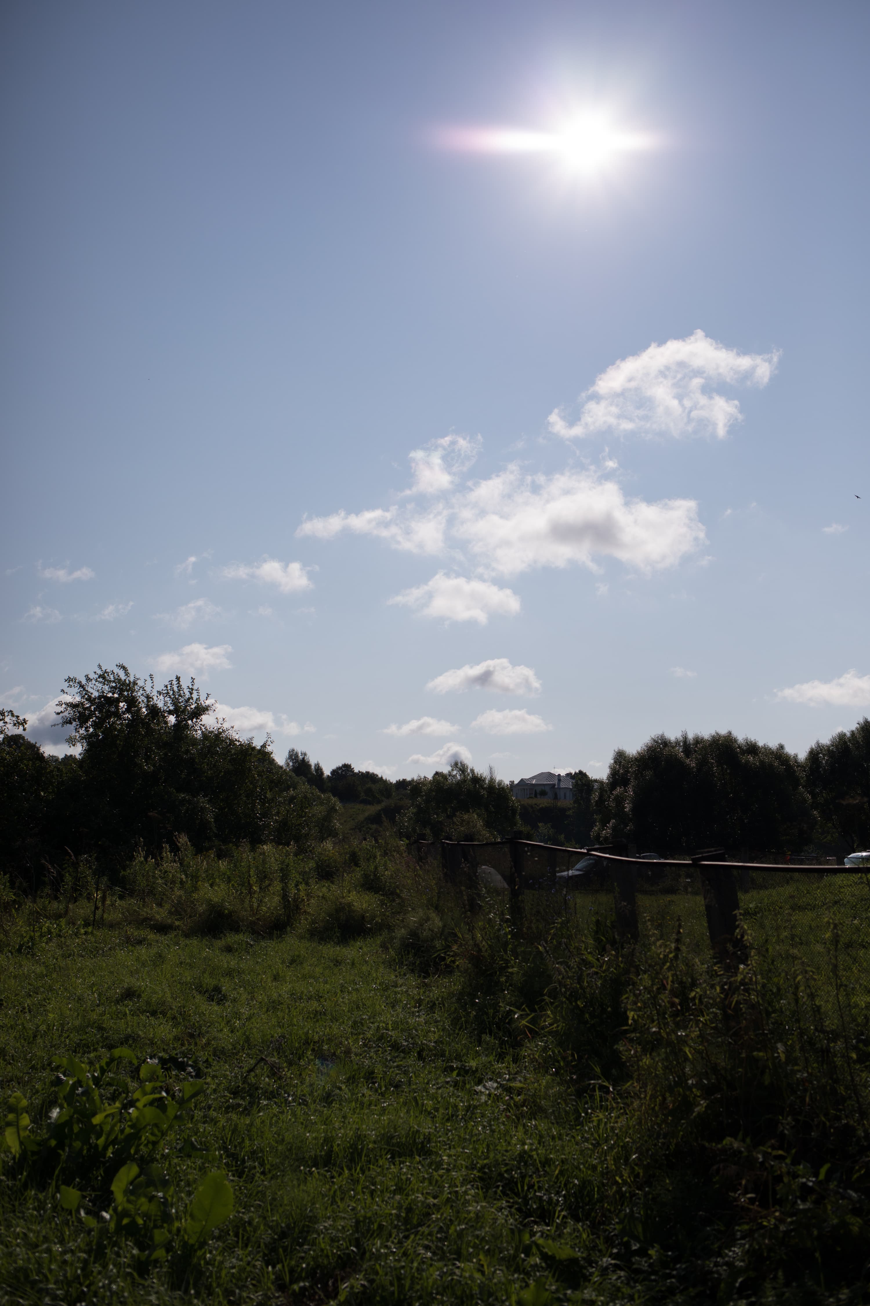 Снимки ниже сделаны в Суздале, в огородах между рекой Каменкой и стенами Покровского монастыря при ISO 100. Из-за высокой яркости утреннего солнца при F1,4—F2 камере не хватило минимальной длительности выдержки (требовалось 1/32000 с и 1/16000 с соответственно), поэтому допущенную передержку мы исправили в Adobe Camera RAW. Эта коррекция не влияет на значимую для нас деталь — рисунок солнца и его лучей.