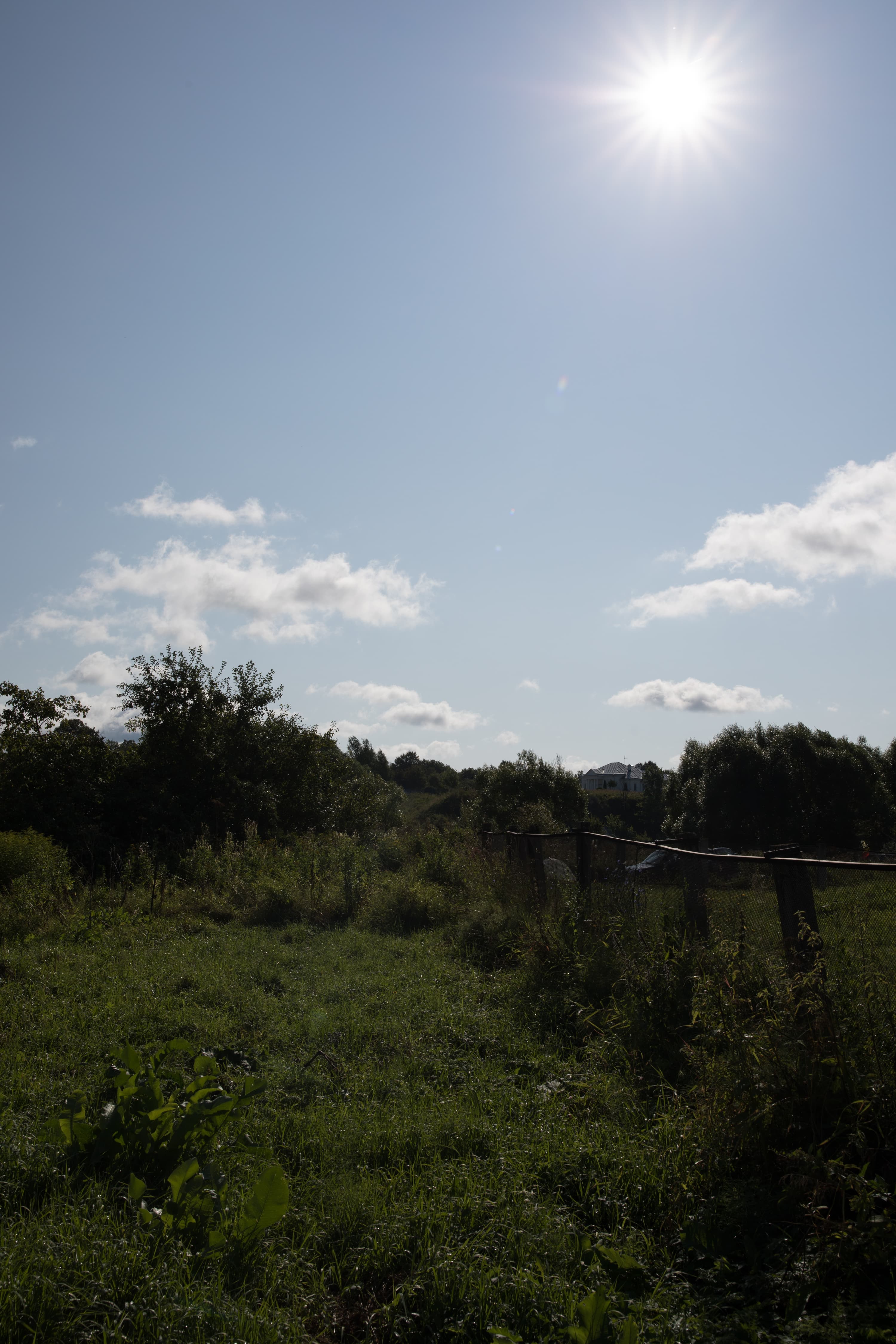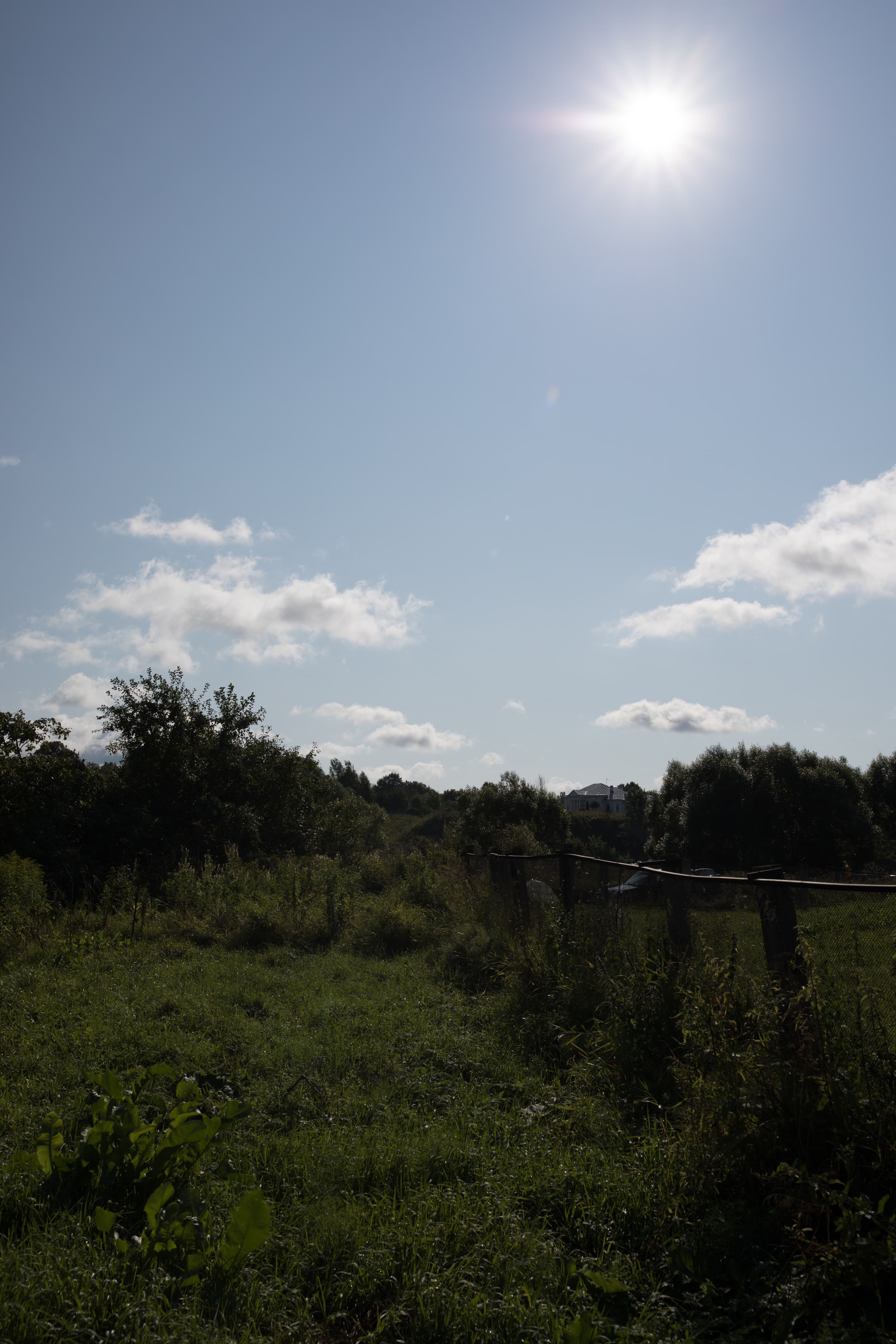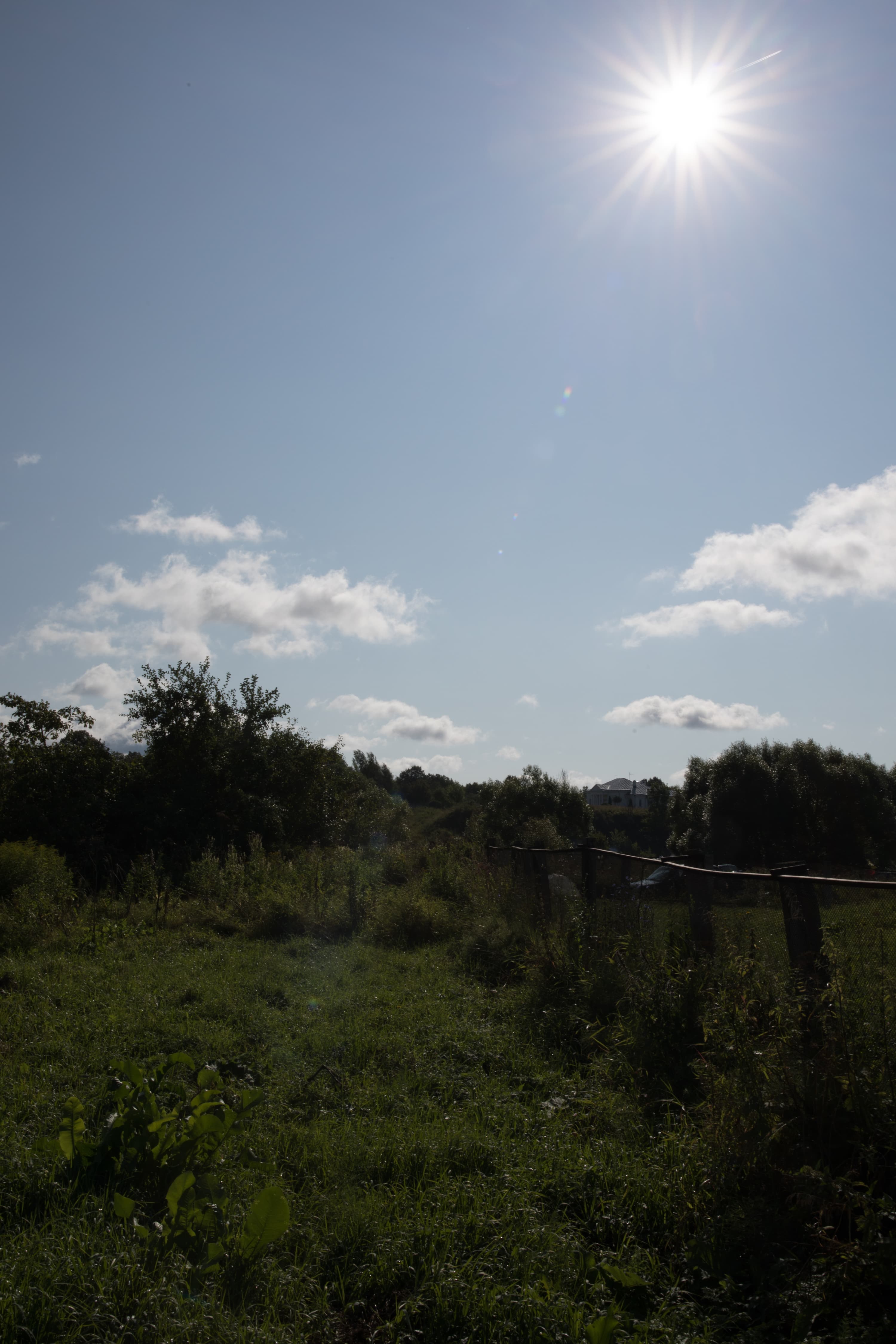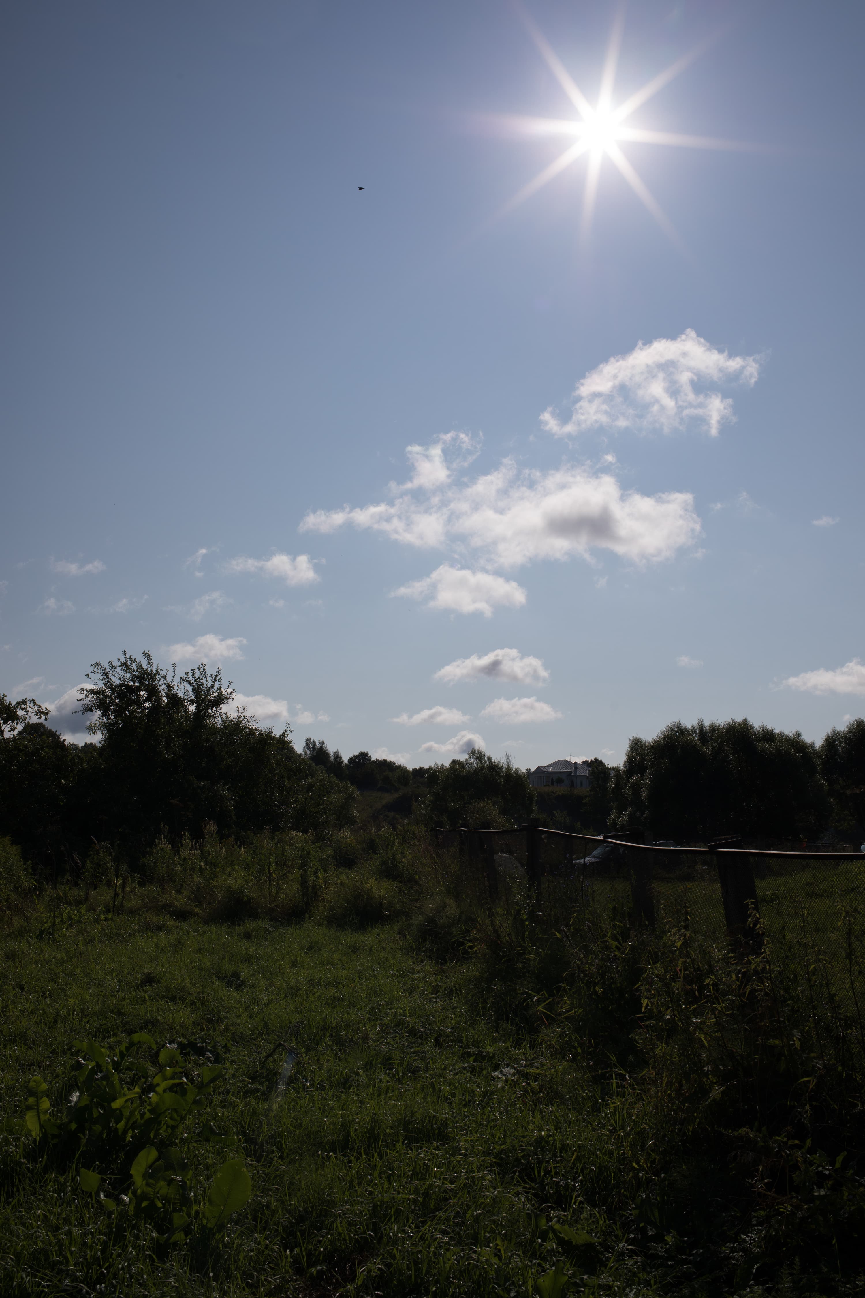 Снимки ниже сделаны в Суздале, в огородах между рекой Каменкой и стенами Покровского монастыря при ISO 100. Из-за высокой яркости утреннего солнца при F1,4—F2 камере не хватило минимальной длительности выдержки (требовалось 1/32000 с и 1/16000 с соответственно), поэтому допущенную передержку мы исправили в Adobe Camera RAW. Эта коррекция не влияет на значимую для нас деталь — рисунок солнца и его лучей.