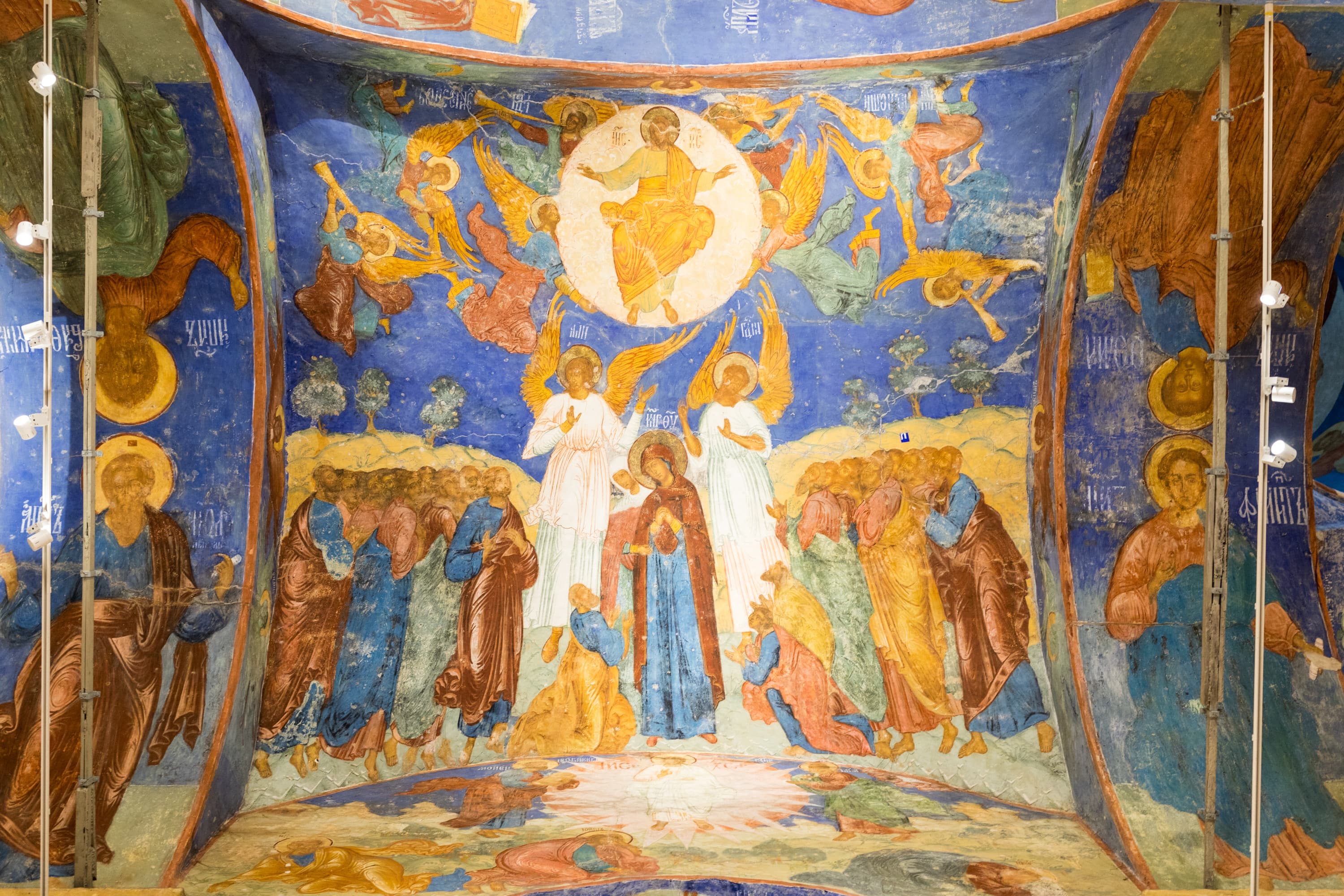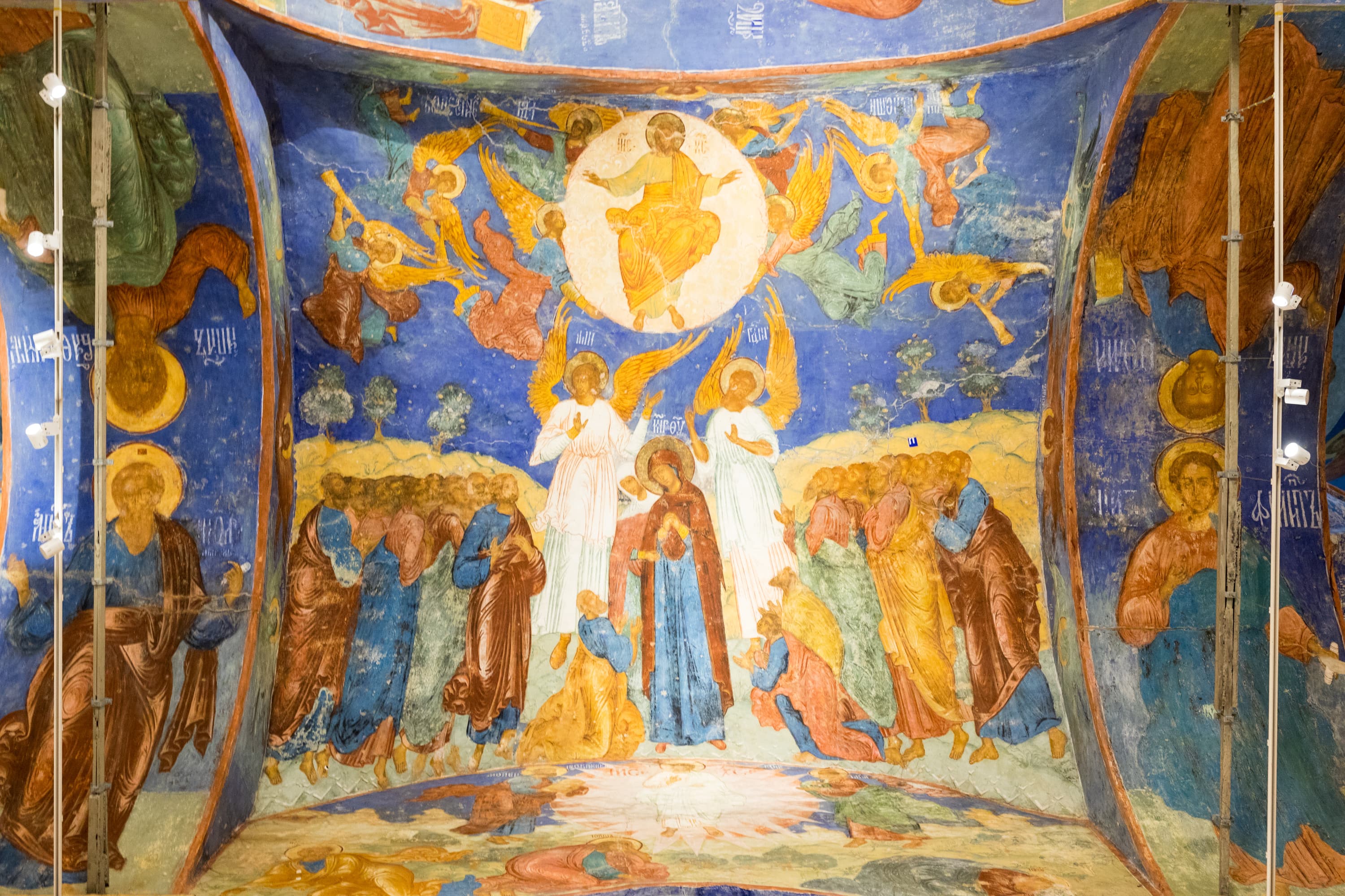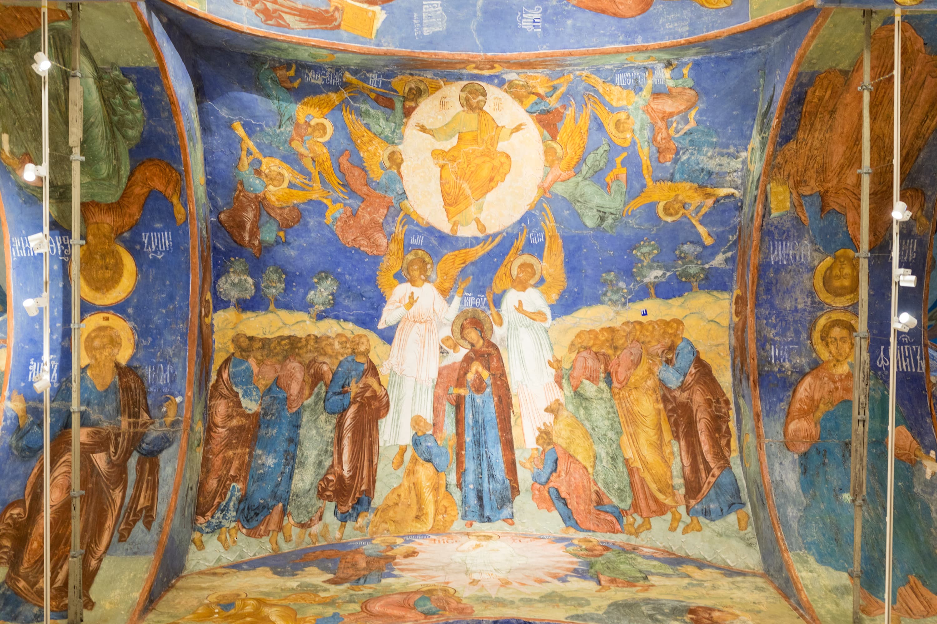 Теперь исследуем, какие снимки позволяют получить наши подопечные при искусственном освещении, причем в условиях его нехватки. Фото ниже сделаны в Преображенском соборе Спасо-Евфимиева монастыря в Суздале. Он построен в 1594 г. и расписан мастерами под руководством Гурия Никитина и Силы Савина. Сегодня собор входит в состав Владимиро-Суздальского музея-заповедника и вместе с монастырем включен в список Всемирного наследия человечества (UNESCO World Heritage). Фрески в соборе освещаются светодиодными лампами, что позволило обойтись без дополнительной корректировки баланса белого.
