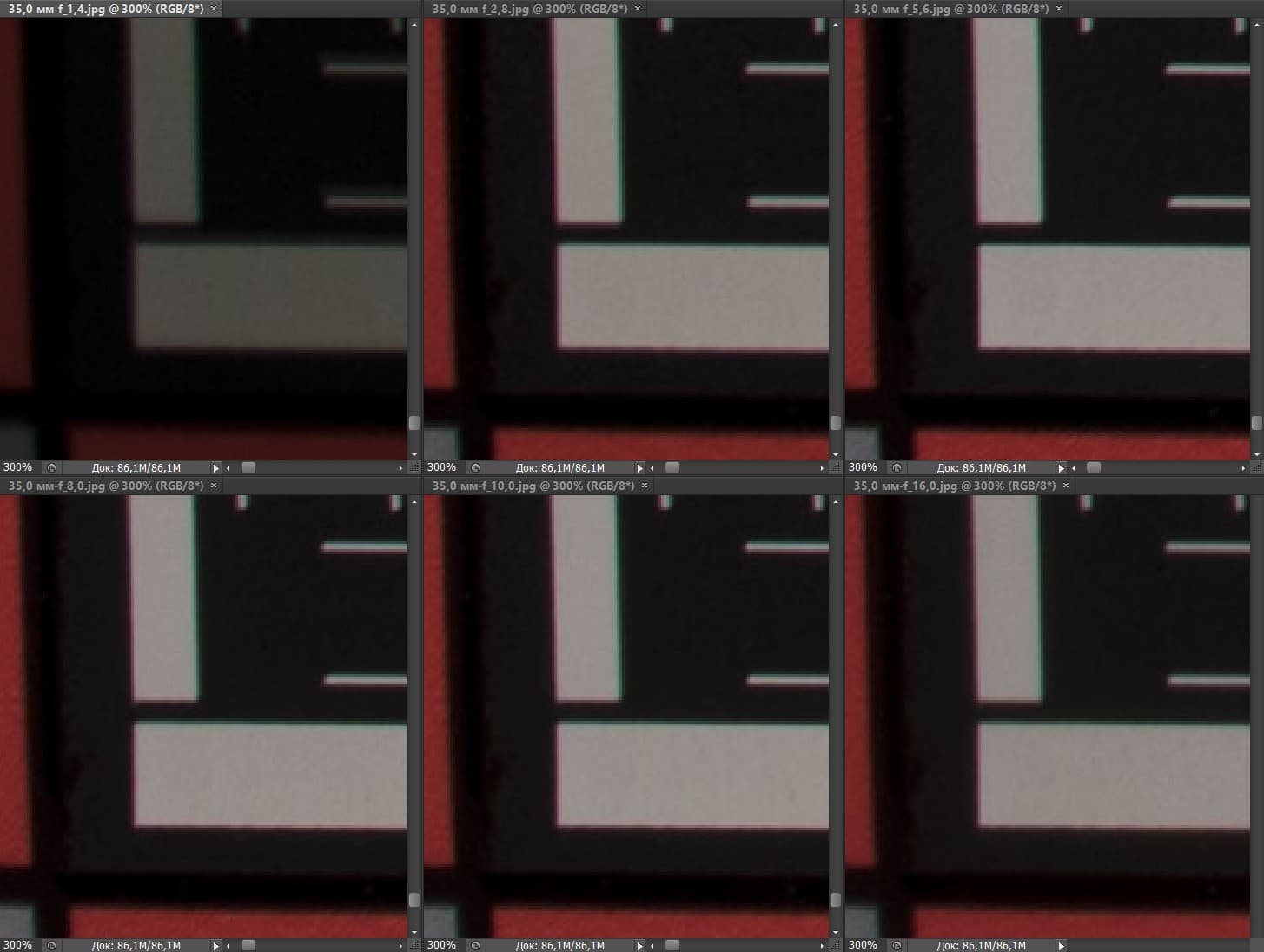 Специфика АББ с дрейфом в теплые тона у «старшего» испытуемого сохраняется. Резкость в центре кадров практически одинаковая у обоих объективов при всех сравнимых степенях диафрагмирования. На периферии кадра Canon EF 35mm f/2 IS USM чуть менее резок на открытой, но чуть опережает Canon EF 35mm f/1.4L II USM при F16—F22.