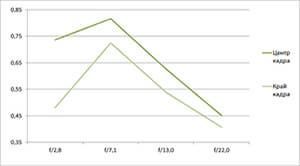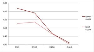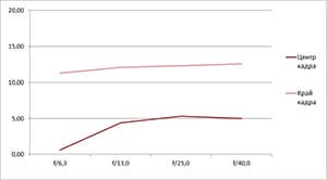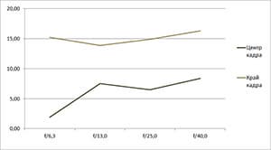 - Как правило, небольшой разрыв в разрешении на краю и в центре кадра.