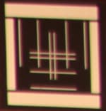 При фокусном расстоянии ЭФР = 77 мм геометрические искажения принимают форму «подушки» с дисторсией D = 2,81. Для среднего «фокуса» это уже ощутимые искажения.