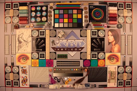 Уровень хроматических искажений мы определяем как процент пикселей на тестовой мишени, ушедших от серой шкалы более чем на 20 единиц яркости. Неточности баланса белого на этот процент не влияют, при ручной настройке баланса максимальное отклонение от серой шкалы не превышает 20 единиц.