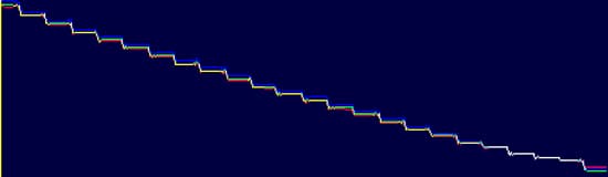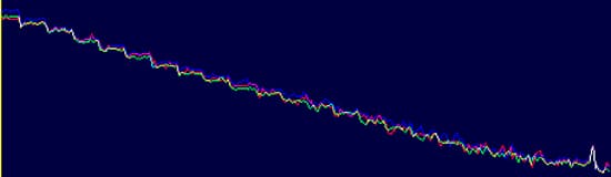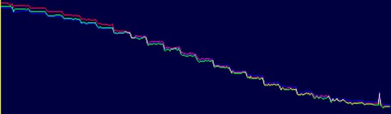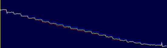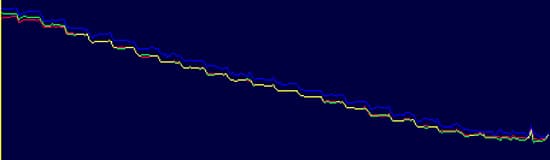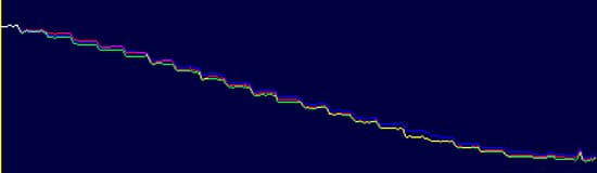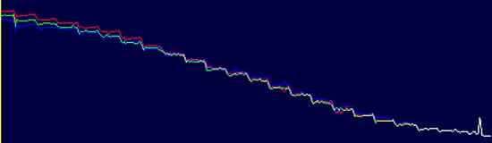 Для того чтобы оценить эффективность профилировки, сравним мишени, «обработанные профилем», с мишенями, которые были получены с помощью программ Canon RAW Image Converter и Adobe RAW. Кроме того, оценим эффективность профиля, построенного для одних условий освещения и установках ISO камеры, при его применении к снимкам, сделанным при других установках ISO и другом освещении. Все приведенные ниже фрагменты обрабатывались (или были построены — симуляция, верхнее изображение) в достаточно «широких» пространствах и после преобразованы в sRGB в Adobe Photoshop. Как один из инструментов для оценки будем использовать серый клина. Для серого клина построены гистограммы яркостей в каналах RGB с помощью модуля Levels (Дмитрий Кузнецов).