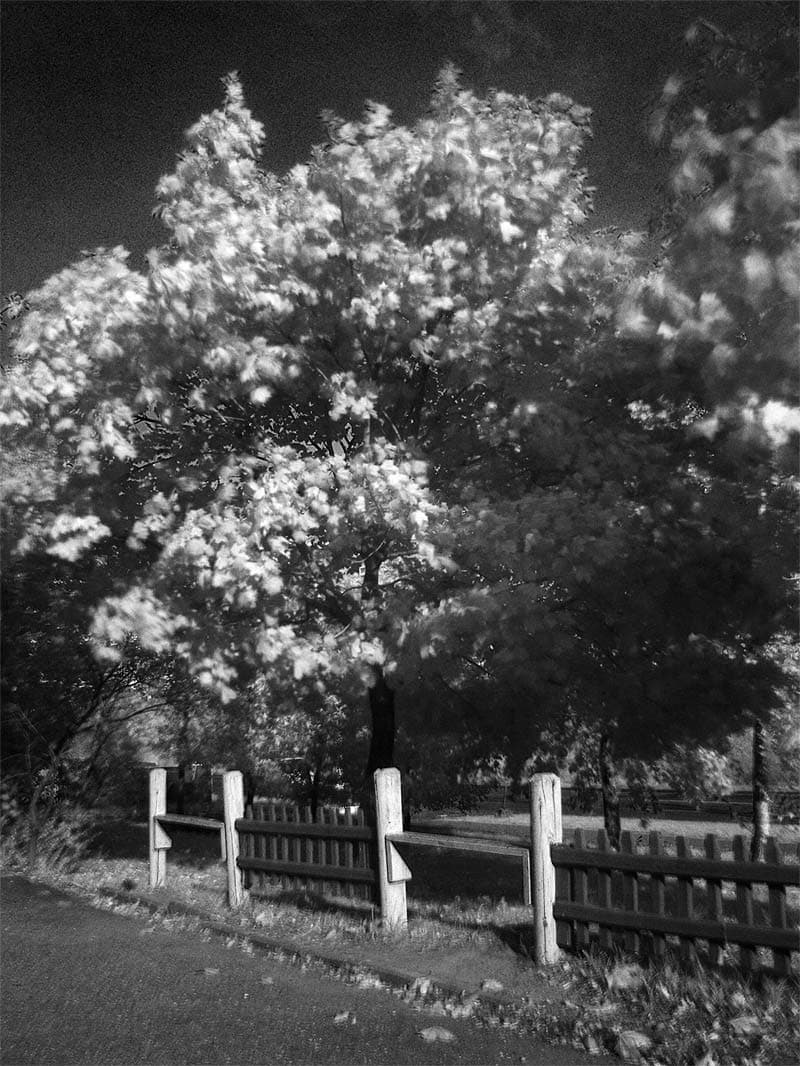 Конечно, самодельному фильтру далеко до настоящего, но эффект есть: небо темнее, растительность светлее. Возможно взяв более плотный отрезок пленки, получим более сильный ИК фильтр. Но и Photoshop позволяет приблизить снимок к настоящему ИК (смотри увеличенные снимки).