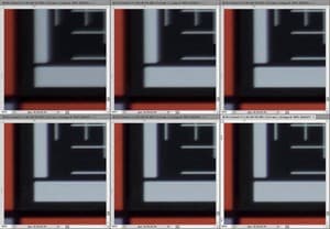 Во всем диапазоне фокусных расстояний и максимальном раскрытии на каждом из них видим, что резкость в центре приемлемая, но к периферии несколько понижается. Воспроизведение полутонов в широкоугольном положении несколько проигрывает картинке на средних и максимальных значениях трансфокации. Впрочем, это может быть вызвано более высоким контрастом изображения и достойно, наоборот, похвалы.