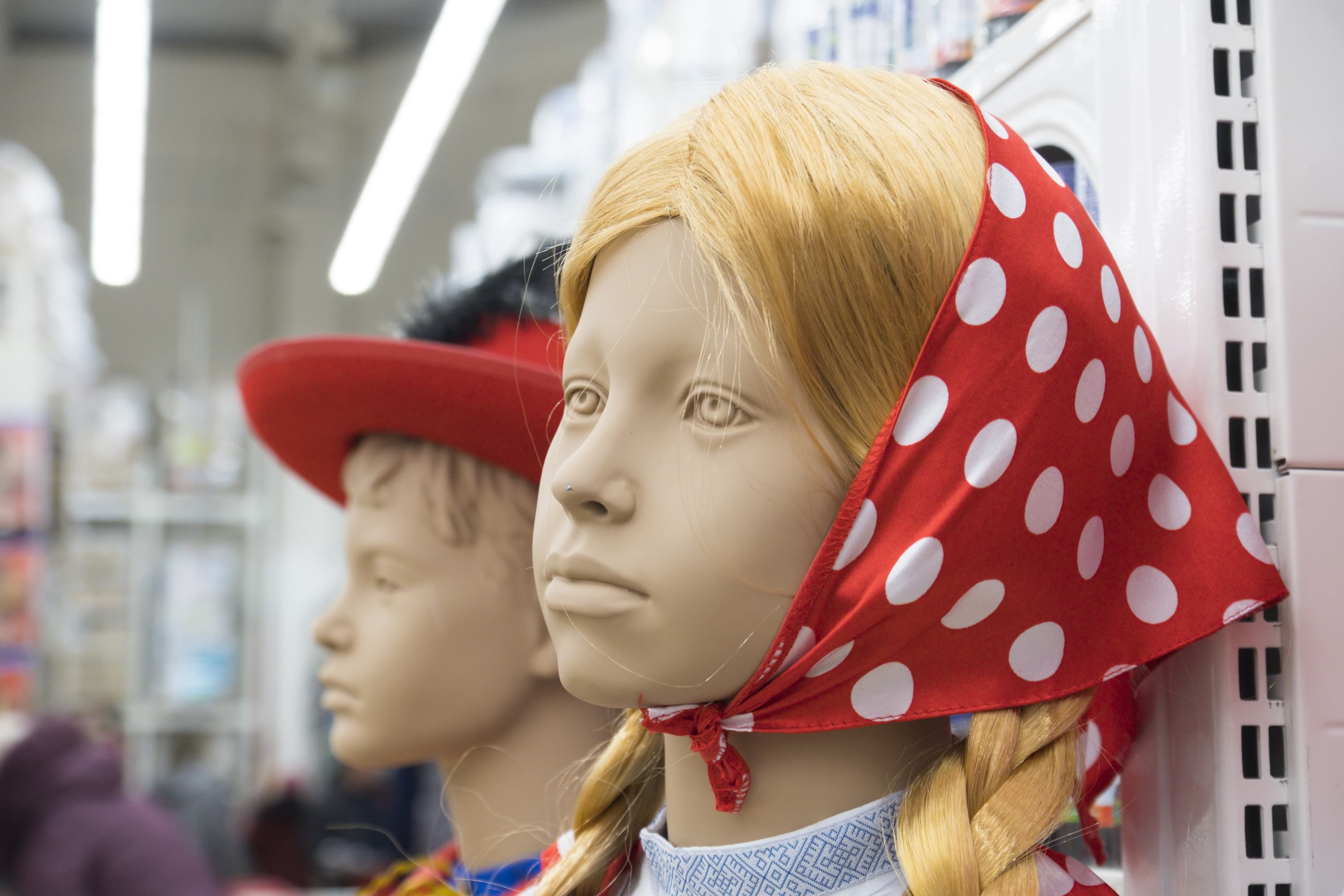 Неплохо получаются у нашего подопечного и цвета, близкие к оттенкам кожи человека, как у двух манекенов на этом снимке.