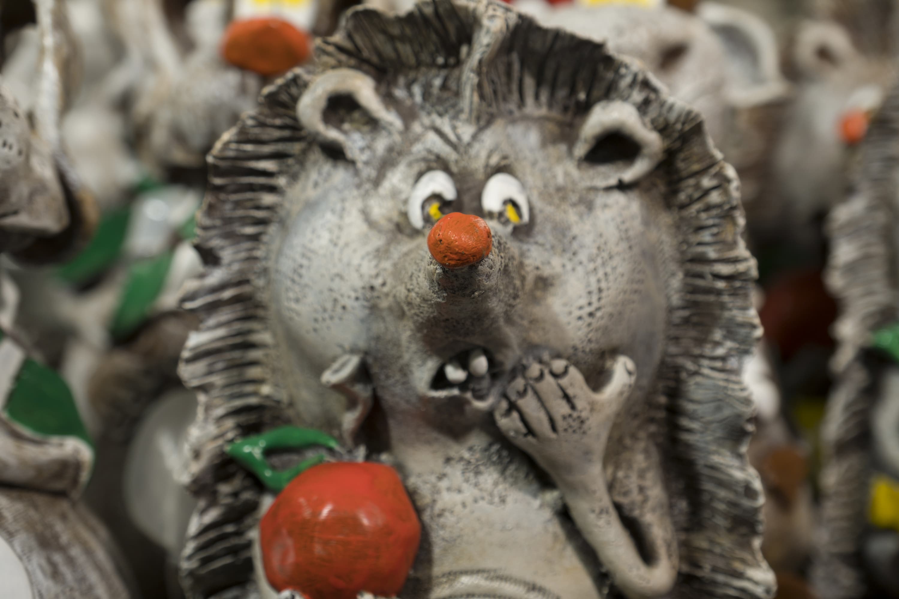 Фокусировка производилась по носу керамического ежа. По счастью, изменение фокусного расстояния не влияет ни на цветопередачу, ни на качество полутоновых переходов. При перемещении к крайнему телеположению становится все более выраженным эффект уменьшения глубины резкости и, соответственно, расширение зоны размытия. Кстати, рисунок этого размытия, насколько его можно оценить по приведенной серии, представляется весьма неплохим.