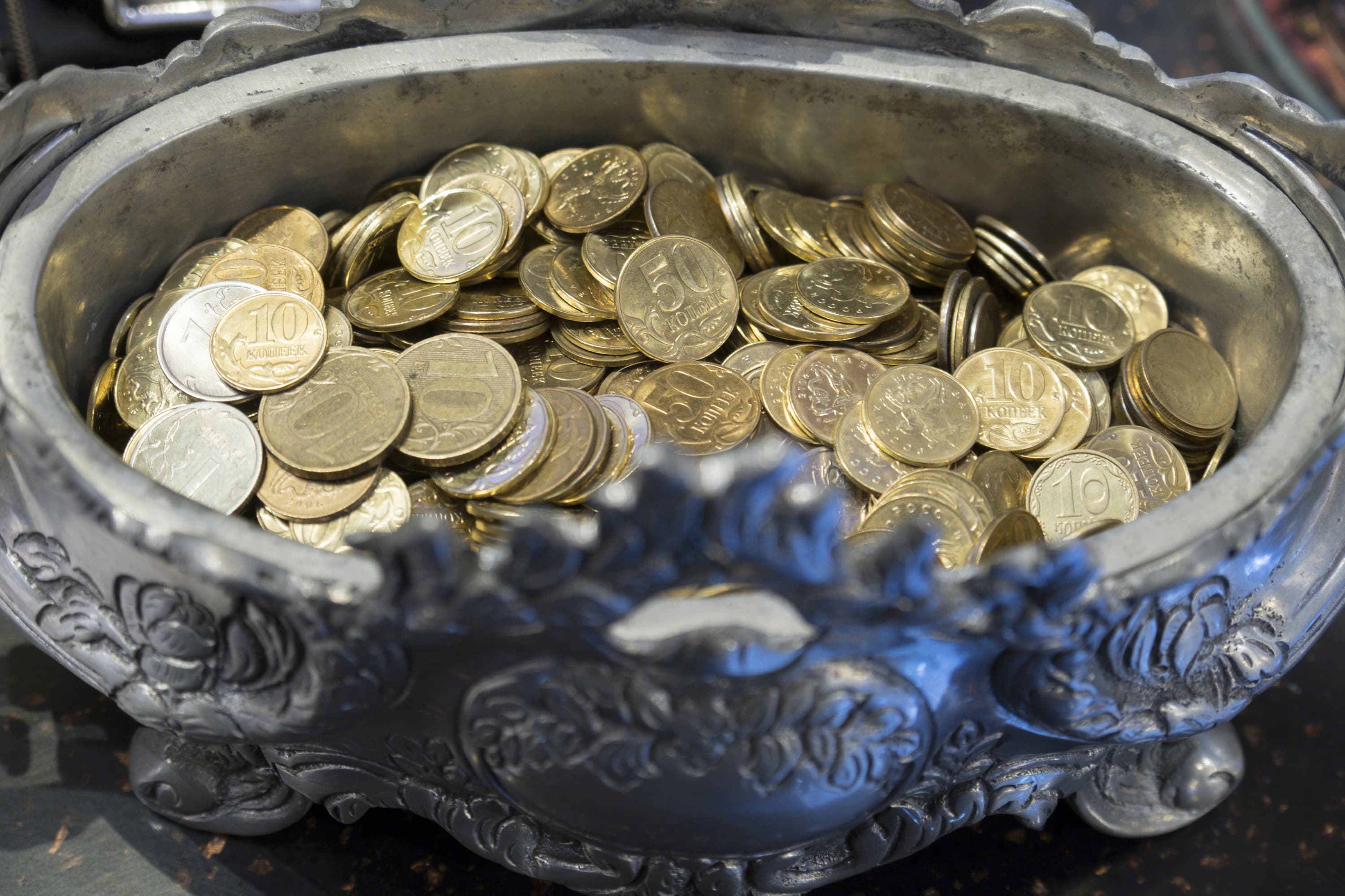 При интерьерной съемке в смешанном свете (лампы накаливания сверху слева и люминесцентный источник снизу справа) баланс белого отработал хорошо. Несмотря на ISO 800, резкость и детализация в центре кадра весьма высокие, но несколько снижаются у самых его краев (разумеется, смотреть стоит лишь на те монеты, которые находятся в пределах глубины резкости на раскрытии f/4,5).