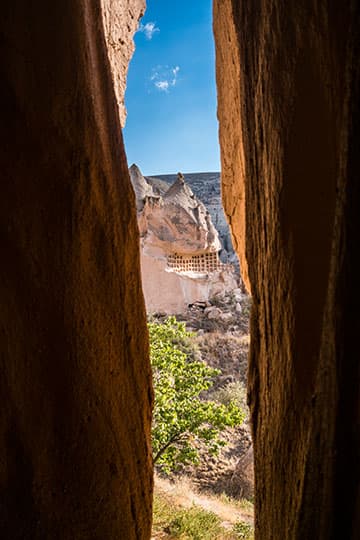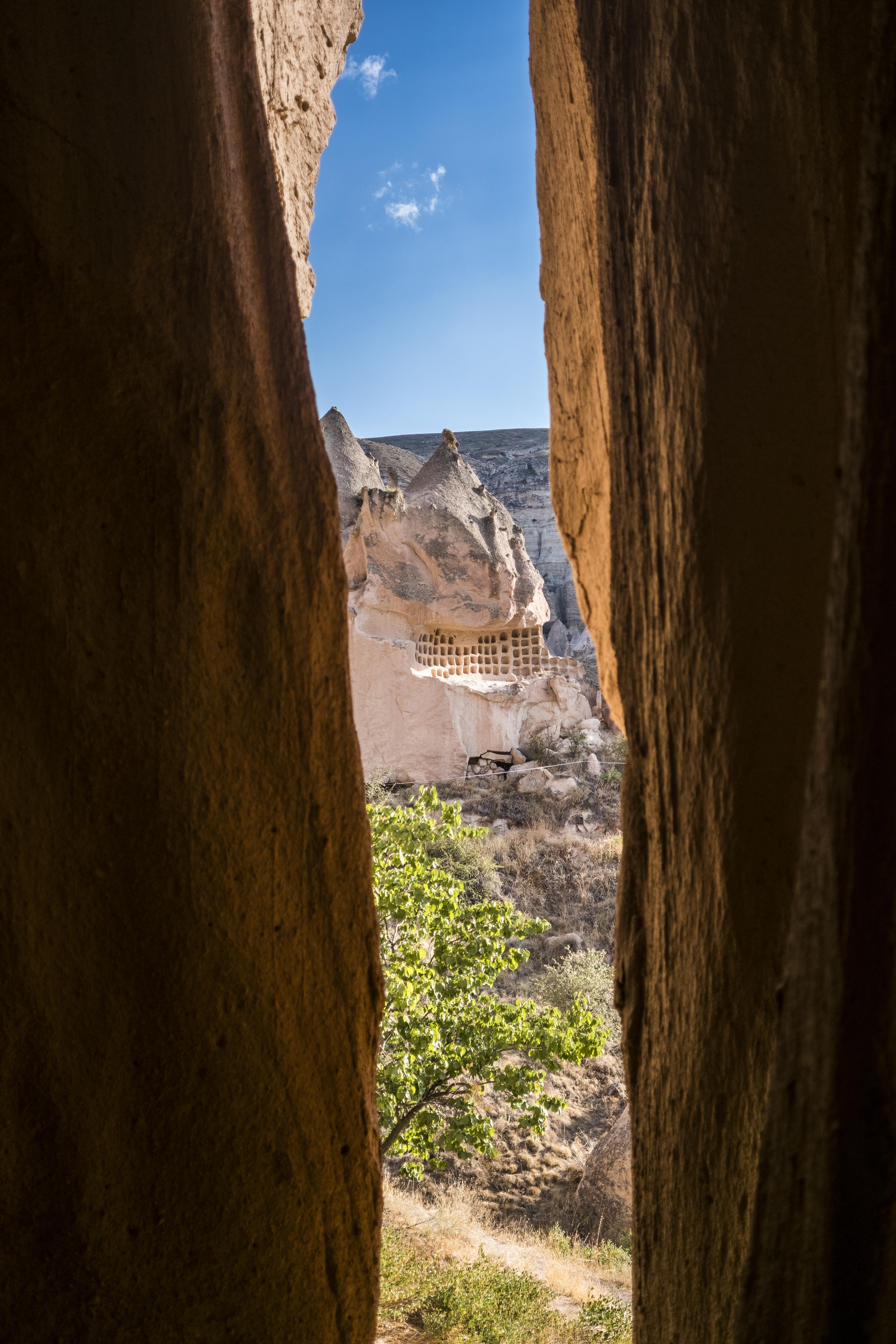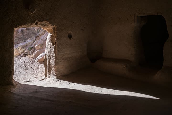 Еще один «пещерный» снимок, завершающий репортаж из Турции. Сцена снята в почти полном мраке, только из входного проема падает отраженный солнечный свет.