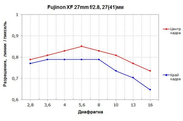 На предварительном этапе мы исследовали Fujinon XF 27mm F2,8 в нашей лаборатории. Обратимся к результатам, приведенным на диаграммах и в таблицах.