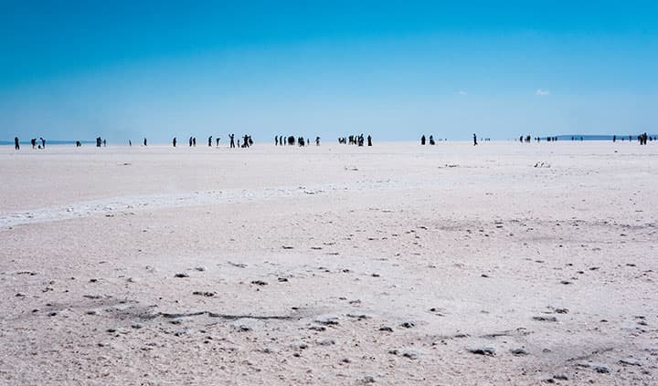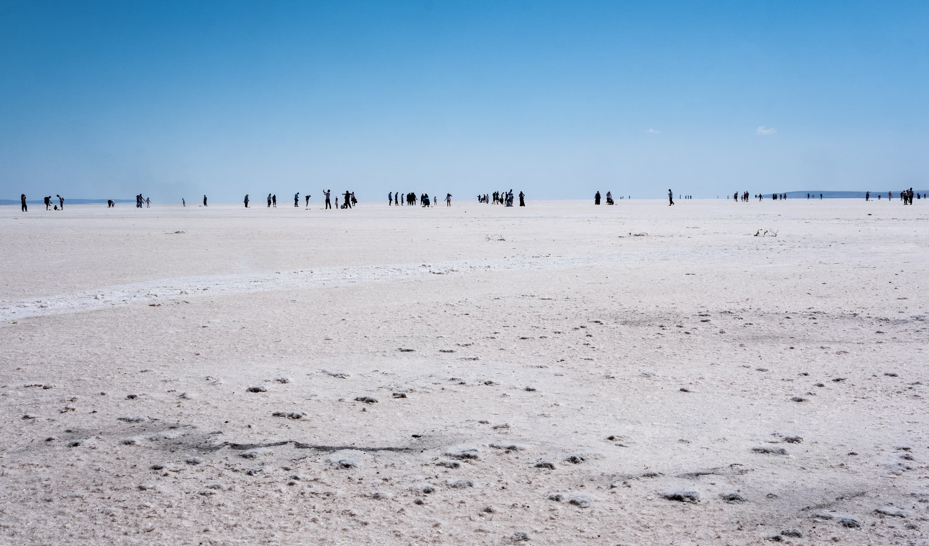 «Туз» по-тюркски означает просто соль. Она здесь повсюду. Это северо-западная часть озера, которая практически совсем иссохла. Лишь долгим ковырянием в соляной корке можно извлечь несколько ложек влаги, для питья совершенно непригодной. Поэтому тут нет никакой растительности. Зато это место самого настоящего паломничества, причем не столько приезжих туристов, сколько коренных жителей Турции: якобы здесь можно не только поправить здоровье, но и излечиться от многих недугов. Впрочем, для нас главное то, что здесь можно задать объективу хорошую работу.