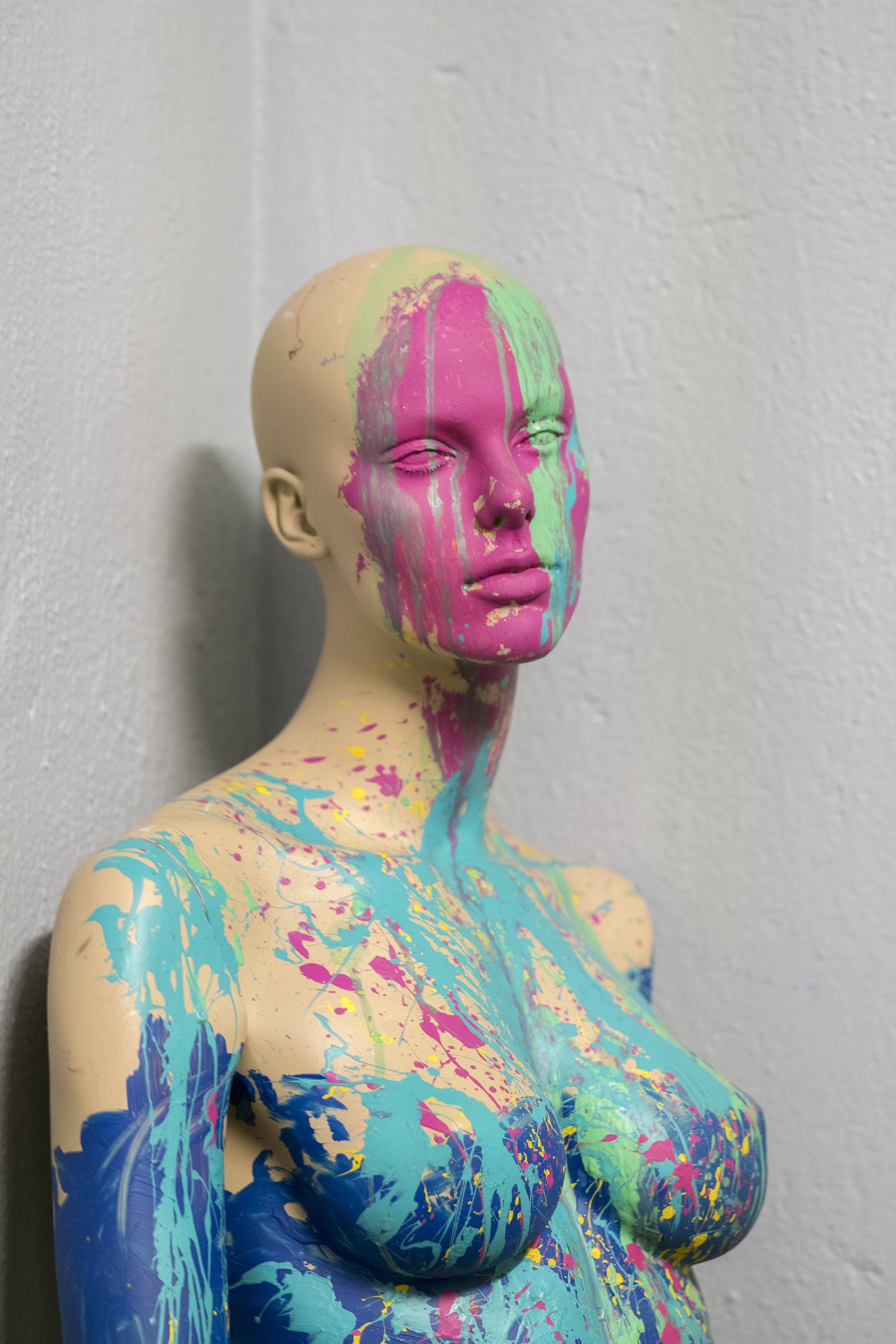 У манекена вполне достойная имитация оттенков кожи. Облить, намазать и забрызгать его краской — относительно дешевый способ создания произведения современного искусства, а для нас — неплохой объект для исследования цветопередачи подопечных объектива и камеры. Общий тон изображения холодноват, но такая ли, теплая ли гамма — это дело вкуса. В целом, цвета отображены очень хорошо. Получилась даже этакая «истерическая назойливость» в пурпурном и голубом.
