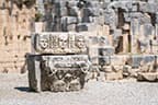 Вот подтверждение замечательной резкости и детализации объектов на среднем плане. Полное раскрытие диафрагмы позволило размыть обломок на переднем плане и каменные блоки на заднем. А маски в зоне резкости и детали декора прорисованы четко, объемно, живо. Великолепно заиграла на свету фактура обработанного камня и даже проявились огрехи кое-как заделанной трещины в нем.