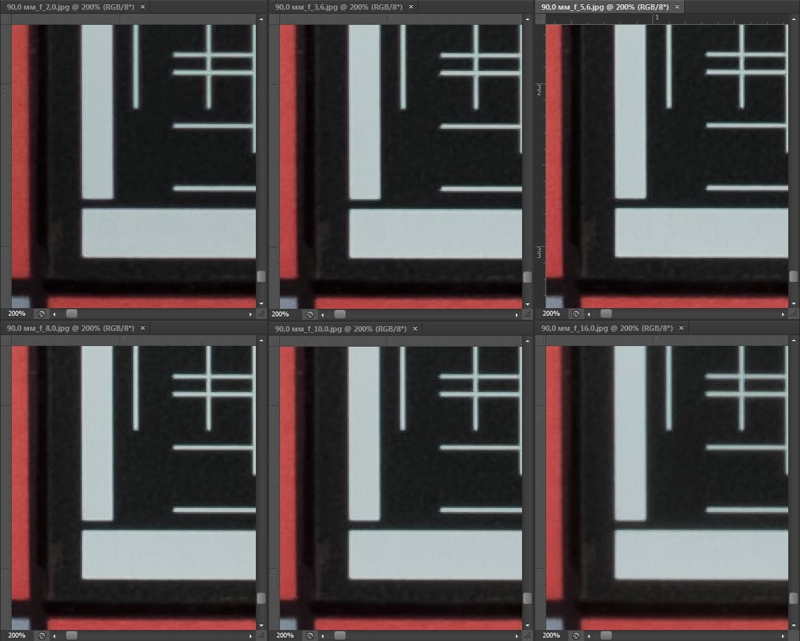 Fujinon XF 90mm F2 R WR демонстрирует весьма высокую разрешающую способность начиная с открытой диафрагмы и до F13, когда ее уже заметно ограничивает дифракция. При этом в центре кадра разрешающая способность лишь ненамного выше, чем на периферии.
