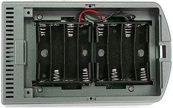 Перед нами достаточно крупная коробочка, размерами примерно 140×90×35 мм. Почему такая большая? Не стремились просто минимизировать размеры, да и хотелось реализовать возможность работы от батареек (чтобы не искать в панике розетку). Последнее сказалось сильнее всего — удобным образом разместить в корпусе целых восемь элементов питания типа ААА иначе было бы невозможно.
