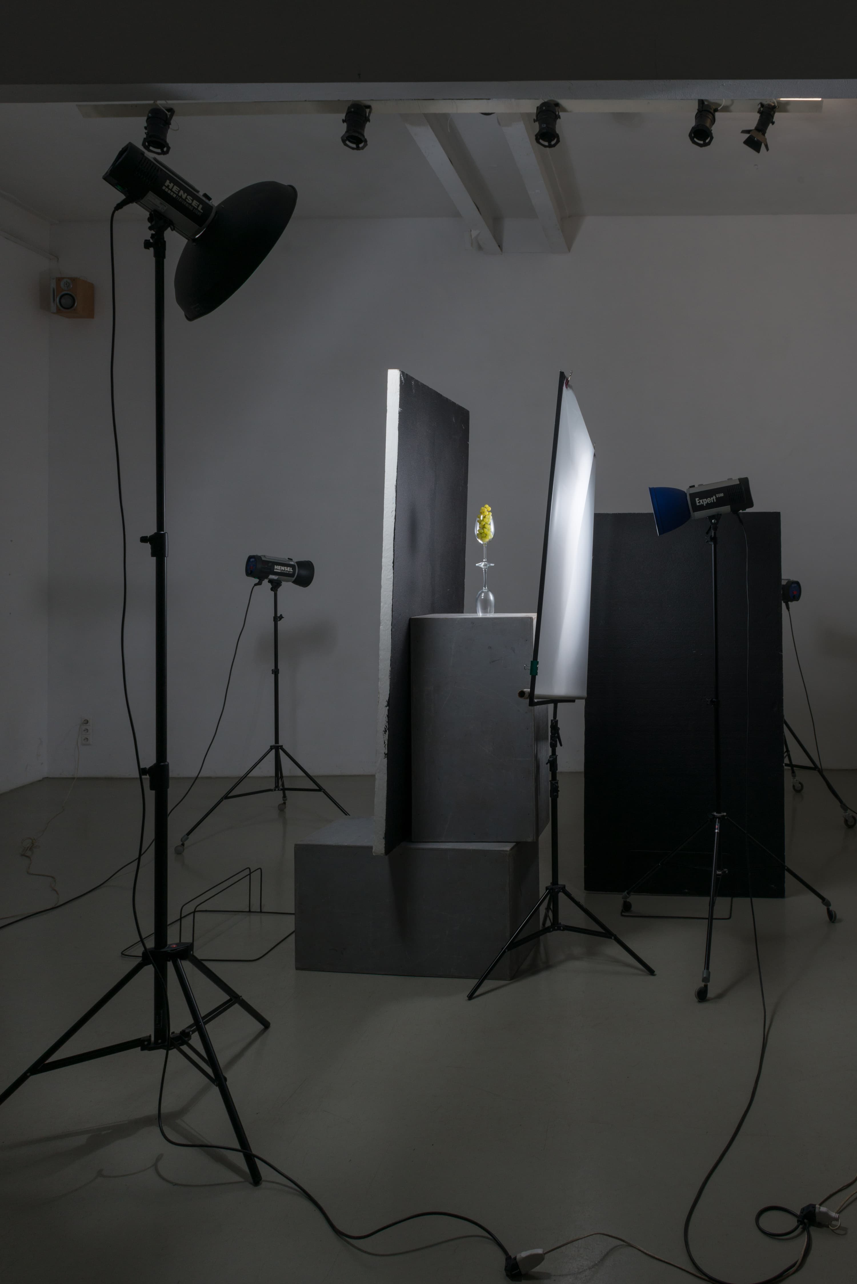 - Разносим объект съемки и фон как можно дальше друг от друга. Свет, отраженный от фона, не должен попадать на объект съемки и создавать «моделирующий эффект». Иначе программное обеспечение эти области засветки будет пытаться сделать полупрозрачными, что опять будет требовать ручной доработки маски. Для минимизации отраженного от фона света рекомендуется задействовать черные флаги или специальные ширмы, также предлагаемые компанией Hensel (например, такую или такую).