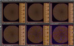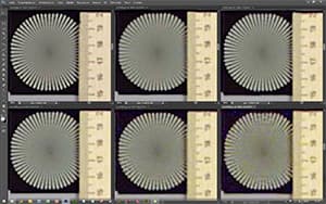 Это хорошо видно на иллюстрации: на левом фрагменте красная стрелка указывает на объект в фокусе — радиальную миру сверху. На правом фрагменте того же снимка, в той же физической плоскости, фокус наведен на круговую миру внизу. Значит, пространство, в котором образуются слои кадра Lytro Illum, создается не набором плоских, перпендикулярных оптической оси кадров. Получается, что это наборы наклонных или искривленных (выпуклых или вогнутых) кадров. Или слоев еще более сложного пространства.