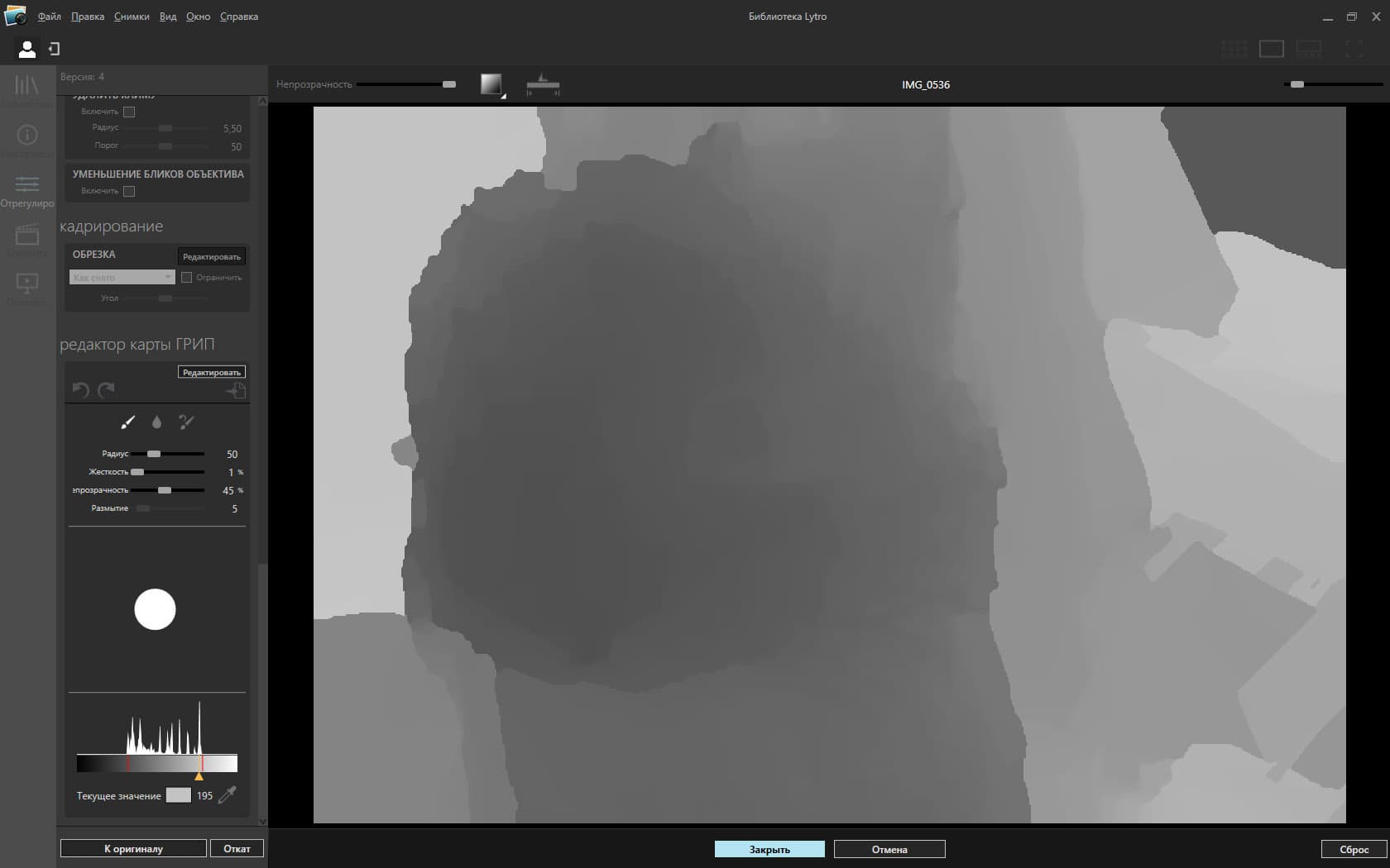 - так называемый «редактируемый экранный снимок» (это TIFF небольшого формата 704×480 и карта глубины резкости в формате PNG);