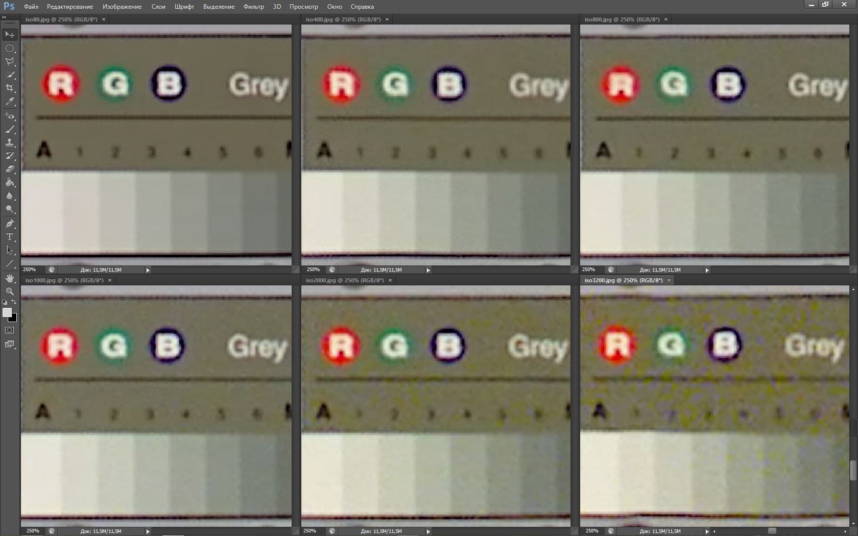 Для нашей задачи — оценки уровня разрешения и шума — лучше всего подходит обычный JPG, сфокусированный точно на плоскости нашего лабораторного стенда. Или обычный TIFF. Но мы выбрали первый, поскольку даже незначительные различия между JPG и TIFF найти практические невозможно.