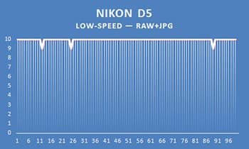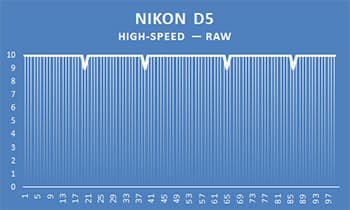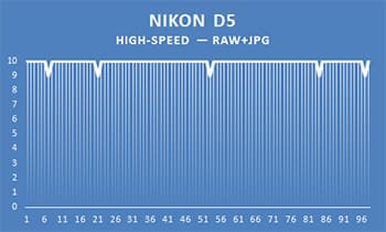 Nikon D5 позволяет снять в одной серии до 200 кадров. Но по нашей методике достаточно 100 кадров в серии, и мы не стали делать для Nikon D5 исключение, хотя возможность «отщелкать» 200 кадров без замедления съемки — замечательна.