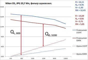 - Но в темной сцене шумодав Nikon D5 не дает такого эффекта, здесь мы снова видим преимущество флагмана Canon. Его разрешение на 1,5 мегапикселя выше, чем у Nikon D5, а шум ниже на 0,4 балла.