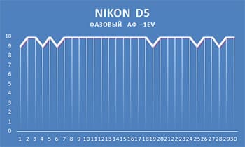 - При этом — практически во всех тестах отставание Nikon D5 совсем незначительное, соизмеримое с погрешностью измерений. Но после тестирования двух разных экземпляров Nikon D5 мы можем точно сказать, что в темных сценах: