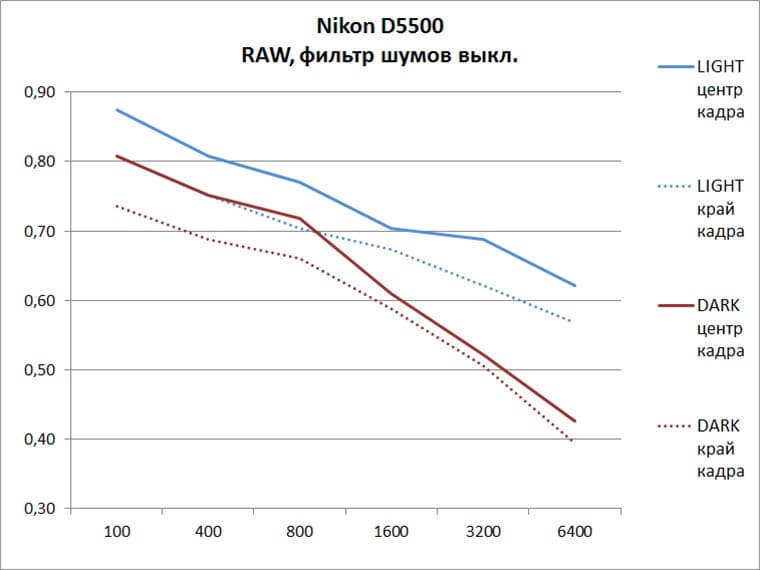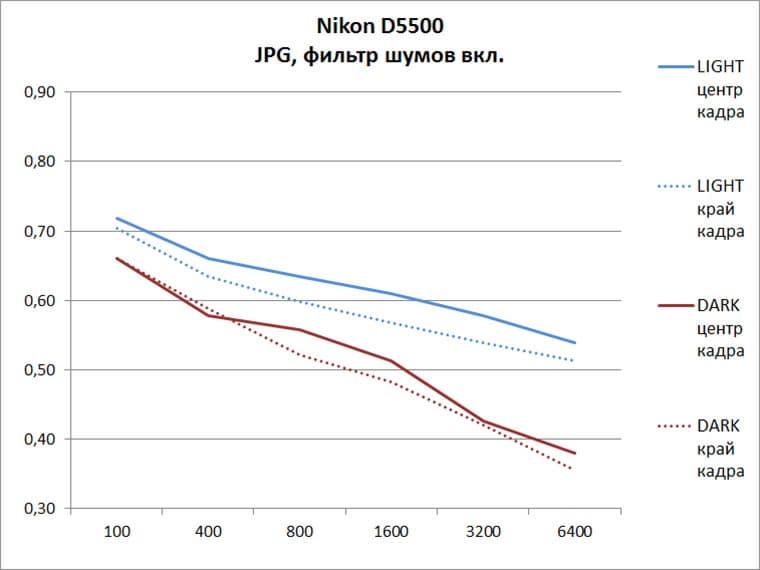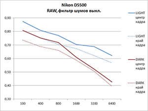 В тесте «Шумы» мы ограничились верхней чувствительностью ISO 12 800, поскольку сравнивали снимки Nikon D5500 и D5300, а у последней именно ISO 12 800 является верхней границей обычного, не расширенного диапазона. Поверьте, что и здесь, на повышенных ISO, Nikon D5500 заметно опережает D5300. Кстати это можно проверить, если скачать тестовые семплы.
