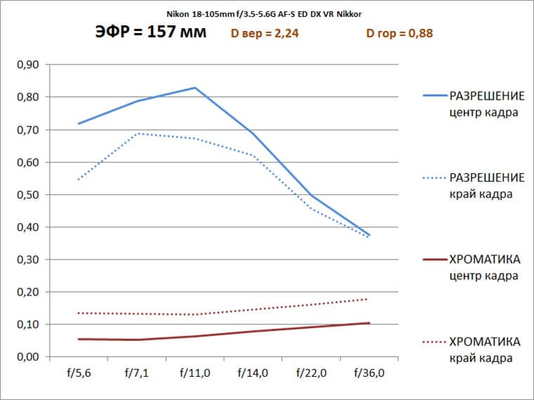Краткая сводка по работе Nikon 18-105mm на «фокусе» 157 мм: