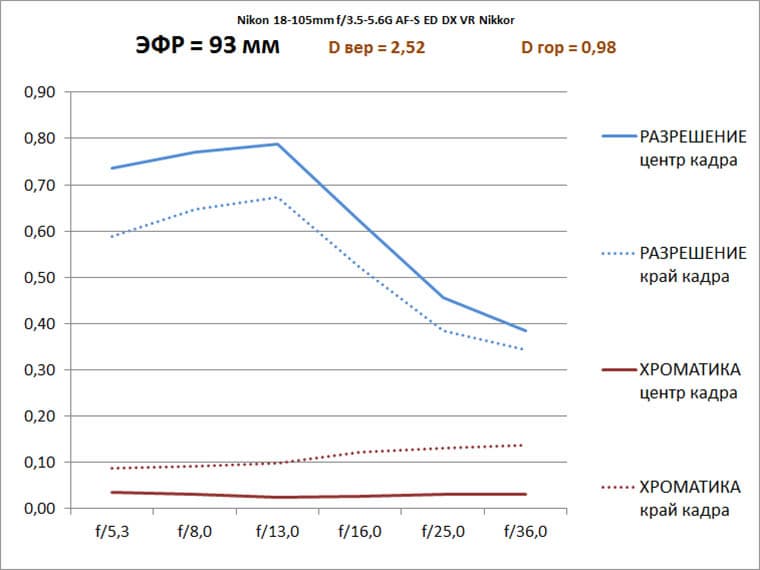 Краткая сводка по работе Nikon 18-105mm на «фокусе» 93 мм: