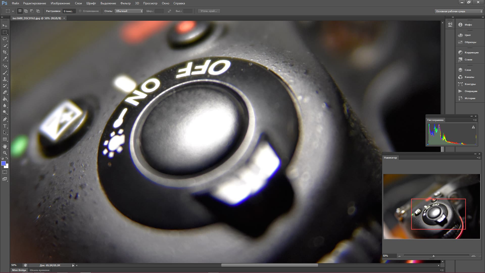 В полнокадровых зеркалках диапазон ISO обычно расширяется не только в «плюс», но и в «минус», то есть в сторону уменьшения чувствительности. Что нам это дает? Если визуально сравнить тестовые снимки, сделанные на ISO 50 и ISO 100, то очень сложно сказать, зачем нужно «охлаждение» матрицы — принудительное снижение чувствительности до ISO 50; найти видимые различия практически невозможно. Если же рассматривать семплы вооруженным глазом, то есть измерять разрешение по ми́рам, все же можно заметить незначительный прирост на ISO 50. То есть эффект «охлаждения» в принципе есть, но его почти не видно. С другой стороны, это «почти» — весьма ценно для тех, кто старается выжать максимум возможного качества. Известно, что в системах Hi-End для прироста качества в 5% требуется увеличение цены вдвое. Примерно.