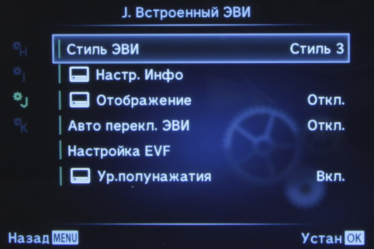- Множество функций, включая такую экзотику, как выбор стиля ЭВИ — в частности, в стиль входит цветовая температура дисплея видоискателя.