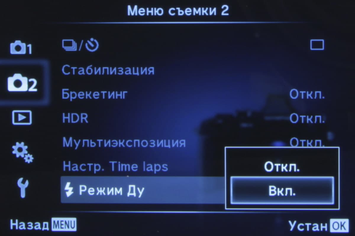 Итак, дизайн Olympus E-M1 — исключительно удачный. Причем, для разных рук — для больших, средних, небольших. В конструкции применены как минимум три нестандартных элемента: диск режимов с переключающимся фиксатором, кольцо с двумя кнопками-клавишами, а также мини-вспышка, которая легко устанавливается в «горячий башмак» и включается при подъеме. На этом фоне меню E-M1 кажется традиционным, практически все его элементы уже обкатаны в камерах относительно старых — Olympus XZ-2, например. Но некоторые пункты меню у других камер не встречаются. На них мы и обратим внимание в первую очередь.