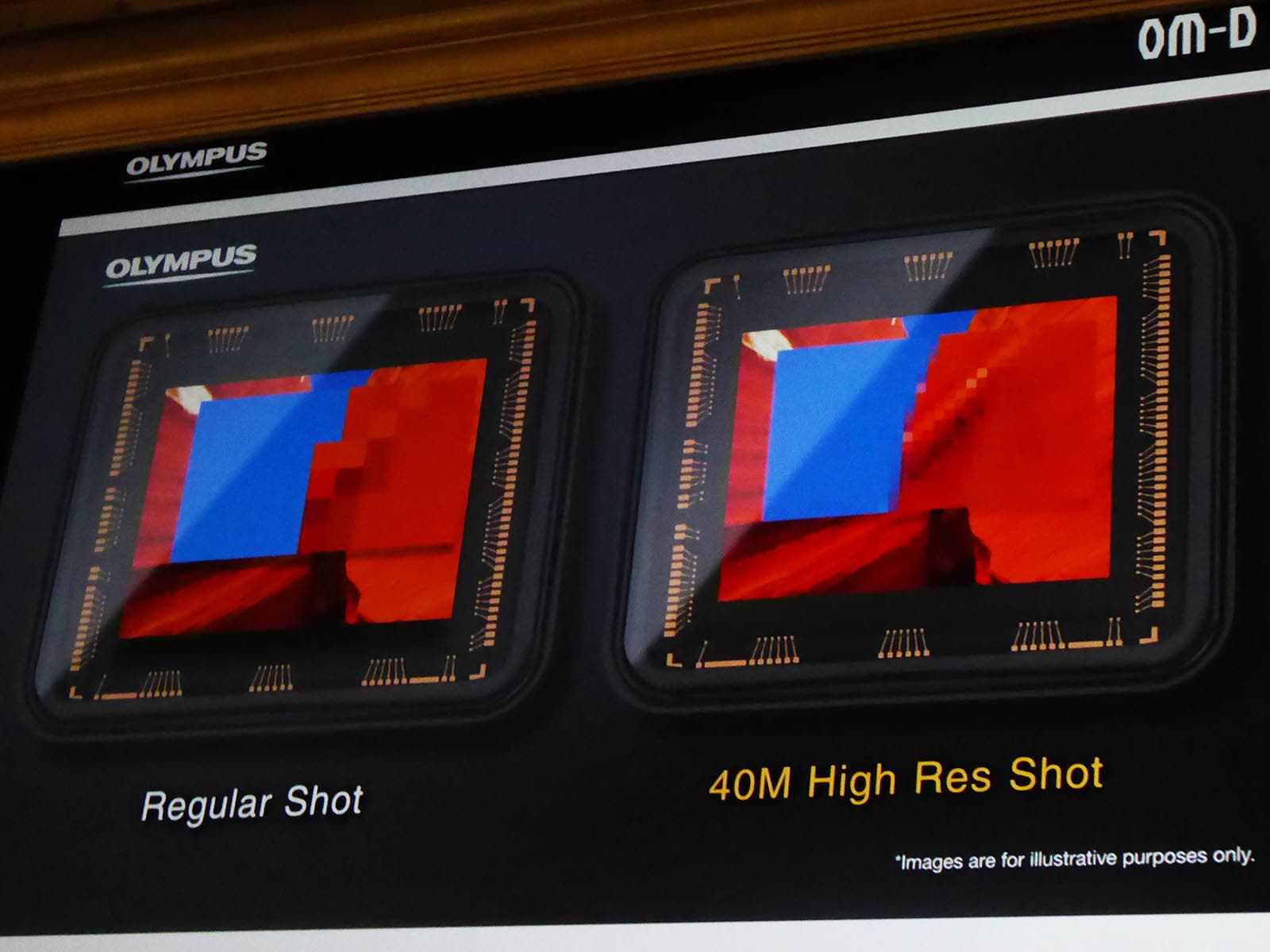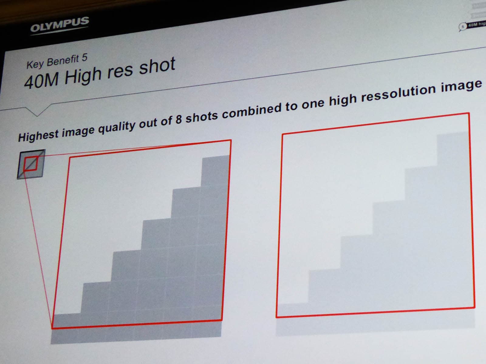 В презентации Olympus сообщение о 40-мегапиксельном режиме 40M Hi Res Shot было выведено на почетное последнее место. По правилу the last but not least, или чтобы небольшое напряжение аудитории дошло до нужной кондиции.