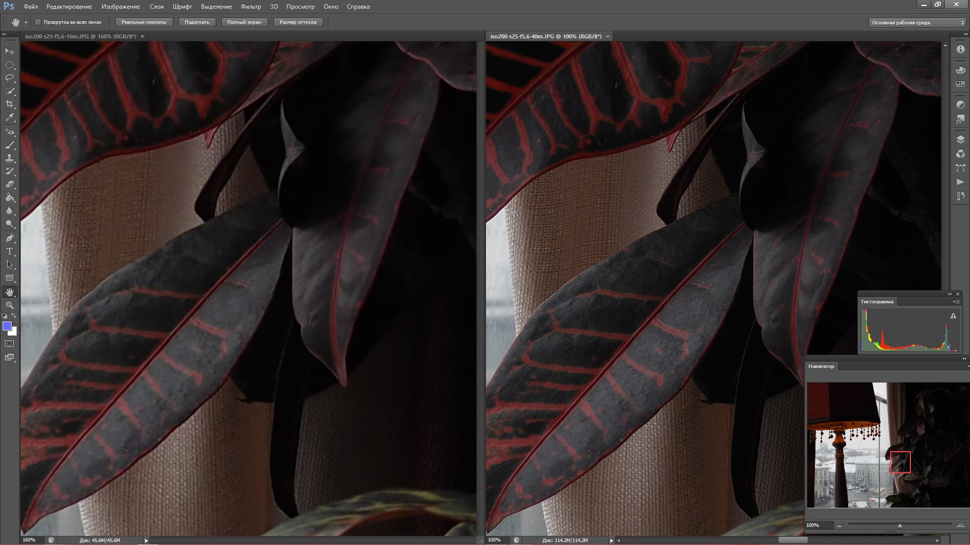 И еще небольшая ремарка. Некоторые кадры, сделанные на ISO 800 немного смазаны — например, второй тестовый кадр (красная ткань с вышивкой) был сделана на выдержке 1/5 секунды. Этого даже с 5-осевым стабилизатором недостаточно, чтобы не было небольшого смаза. Так что некоторые кадры ISO 800 надо было бы забраковать, но мы их оставили, чтобы все тестовые блоки содержали один и тот же набор ISO. Если снимок ISO 800 вызовет у вас нехорошие чувства, смело его не замечайте — это дело рук фотографа, а не вина E-M5 Mark II. Но, поверьте, на презентации делать тестовые кадры не так просто.