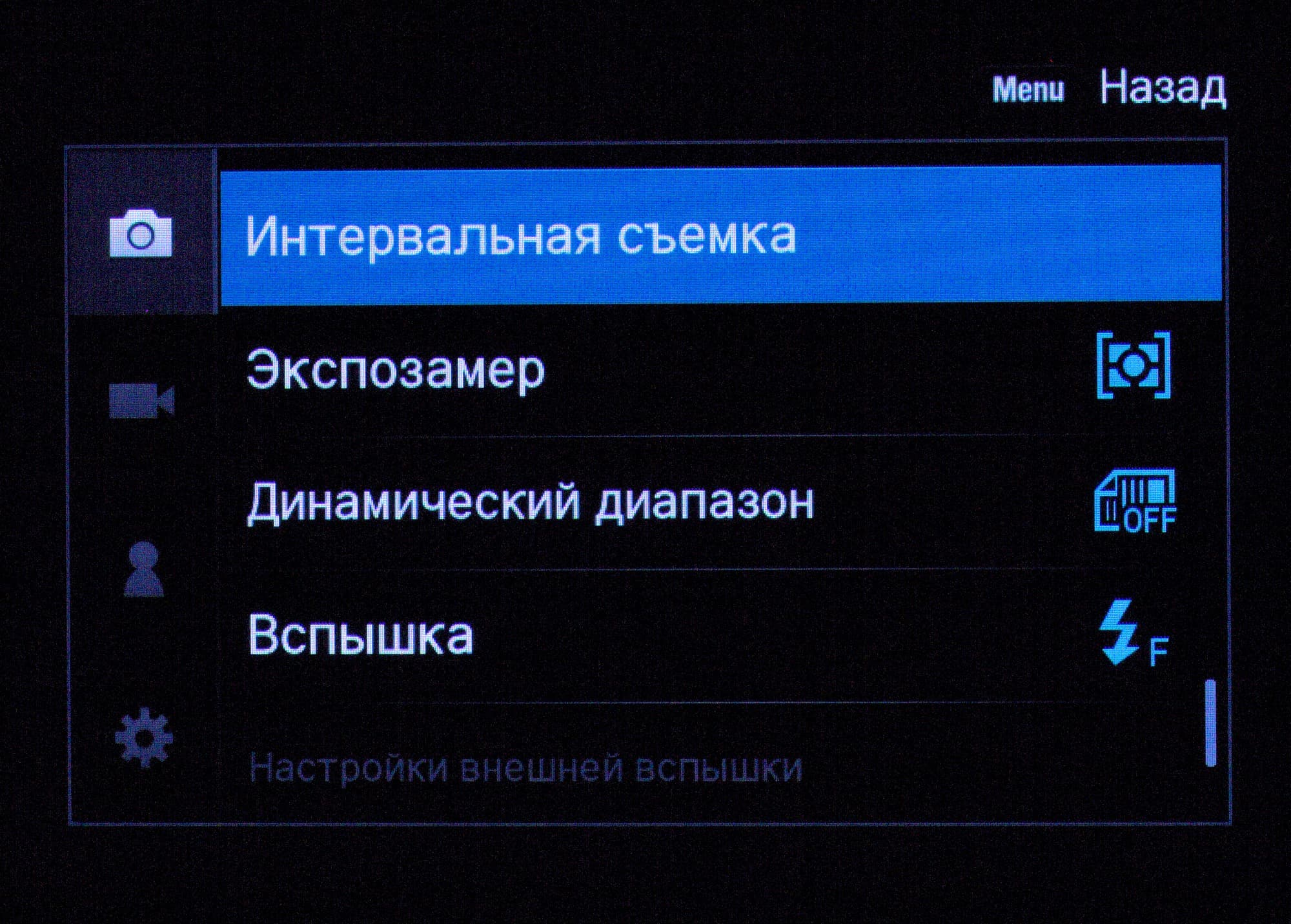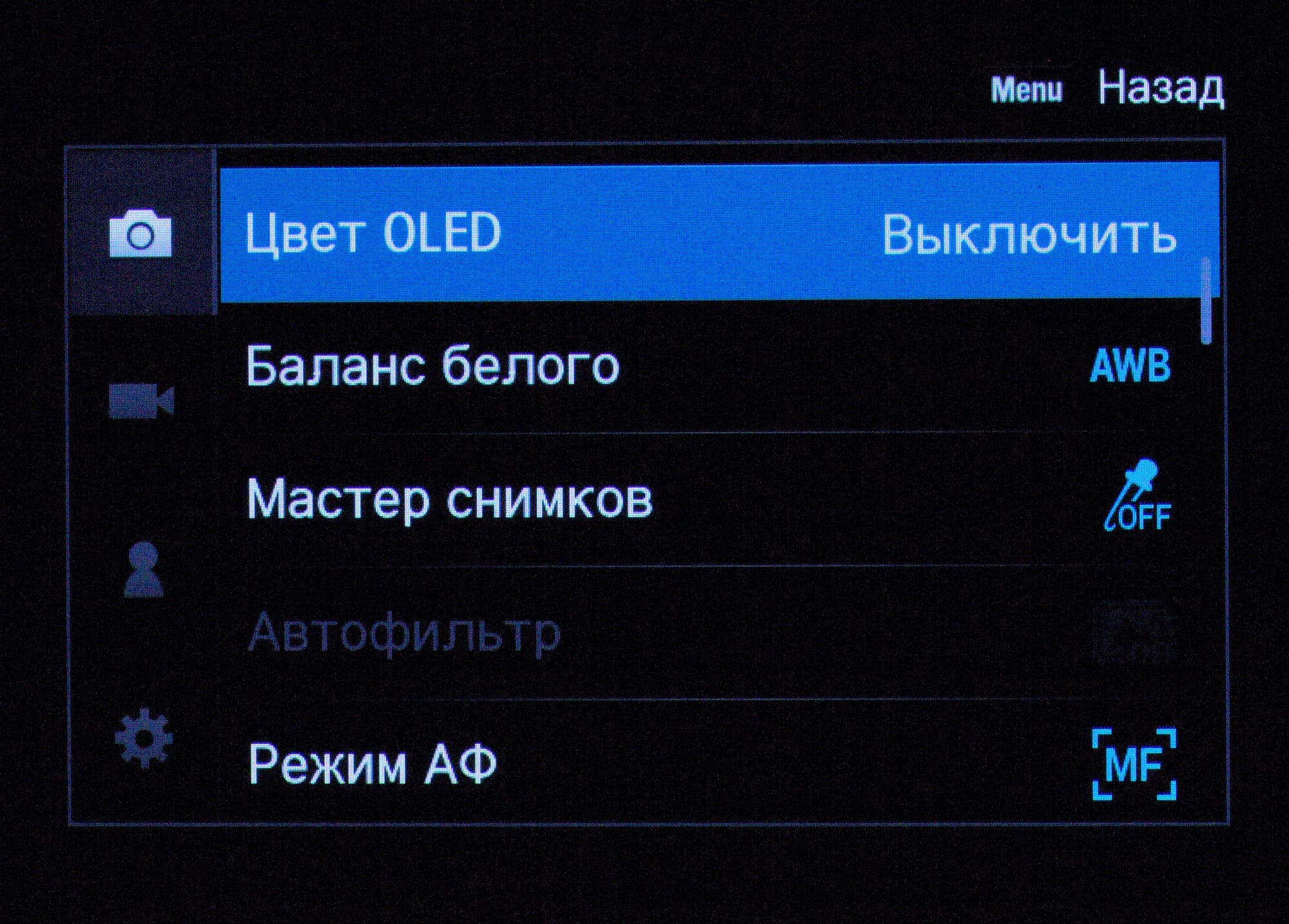 Впрочем, меню — это, пожалуй, основной и едва ли не единственный момент, своей объемностью отличающий камеру от бюджетных и компактных камер Samsung любителького сегмента. Тыкаясь в дисплей, постепенно начинаешь вспоминать и NX300, и даже K Zoom. Настройка параметров с дисплея, конечно, интересна для аккуратной съемки со штатива, но не более того. К тому же практически любой смартфон можно использовать в качестве удаленного видоискателя с возможностью настройки (об этом мы подробнее расскажем во второй части статьи).