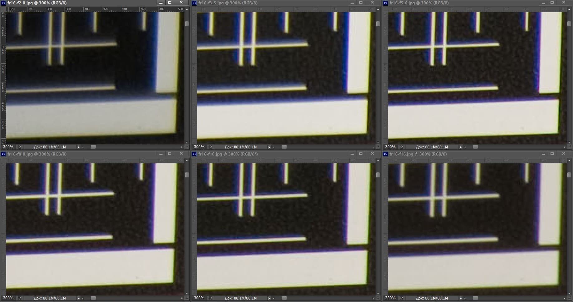 На широком угле камера выдает приличное разрешение и в центре, и на краю кадра. А вот уровень хроматических аберраций на краю кадра очень высок, и, как ни странно, на средних значениях диафрагмы особенно.