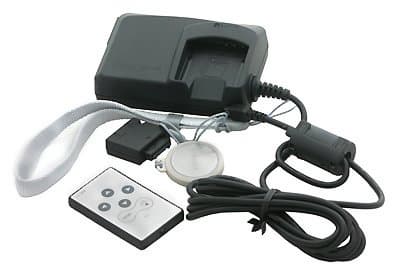 Про пульт ДУ говорить особенно нечего — классический миниатюрный вариант с размерами 45×35×5 мм. Функционально он повторяет джойстик камеры и кнопку «MENU». Использоваться он может только с базовой станцией, только с подключением блока питания и только для просмотра снимков/роликов (точнее просмотра/редактирования). Дальность действия (с новой батарейкой) составляет более 9 метров (хотя конечно разглядеть что-то на обычном телевизоре с такого расстояния будет непросто).