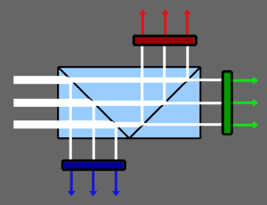 Он обеспечивает отличную разрешающую способность как цветовую, так и пространственную («резкость») без увеличения времени получения изображения. Время получения кадра, пожалуй, самое малое из всех подходов, т. к. нет необходимости производить цветовую интерполяцию (см. ниже). Появляется возможность «тюнинга» каждого сенсора под свой диапазон, например, введением специальной примесной добавки в кремний изменить спектральную чувствительность сенсора. Баланс белого на итоговом изображении сводится к регулировке усиления и уровней черного каждого из трех сенсоров.