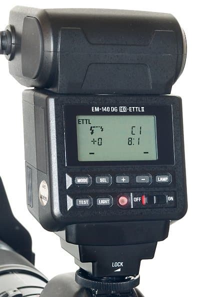 Данная вспышка EM-140DG может использоваться только как основное устройство. В качестве дополнительной, не соединенной с аппаратом вспышки, запускаемой по команде основного устройства, может использоваться EF-500 Super (EF-500 DG Super).