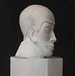 Итак у меня было: камера Casio QV4000 со встроенной автоматической вспышкой в. ч. 10, самодельный зонт отражатель/рассеиватель — парашютная ткань, вспышка Unomat B24 (в. ч. 24) с двумя авторежимами и рассеивающими фильтрами, автоматическая вспышка Minox, два штатива, крепление зонт + вспышка на штатив и серый/белый фоны «Поиск», лампа накаливания в 100 ватт над рабочим столом на потолке, белые экраны — отражатели (ватман). В качестве модели — гипсовая голова в 2/3 человеческой. На рабочем столе помещалась модель, за ней был серый фон. Камера привинчивалась к ручке вспышки, а вспышка устанавливалась на синхронизатор Soligor. Рядом на штативе — зонт с другой вспышкой.