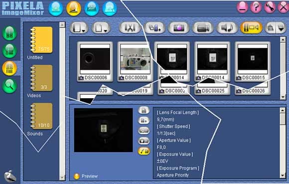 С камерой поставляется программное обеспечение для переноса данных в компьютер (USB-драйвер, Image Transfer) и работы с данными на компьютере Pixelia Imagemixer. Imagemixer позволяет просматривать цифровые снимки и видео/аудио клипы, минимально их редактировать, создавать цифровые мультимедийные альбомы, создавать печатные макеты с рамками и текстом, снимать видео и фотографии «прямо» в компьютер через USB-соединения.