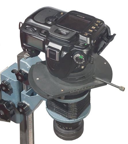 Увеличитель — технически очень хорошо продуманная конструкция, на базе которой можно сделать установку для пересъемки с использованием любых сегодня существующих цифровых зеркальных камер. Реально в этом случае используется только матрица камеры и видоискатель для ручной наводки на резкость. Учитывая достаточно комфортные условия съемки, принципиальной разницы, какую камеру использовать, нет. Дополнительное удобство для работы с компьютером имеют камеры, имеющие интерфейс USB2. Вероятно, еще удобнее было бы фокусироваться по экрану компьютера, совсем отказавшись от оптического видоискателя. Однако серийно выпускаемых камер, позволяющих это делать, сегодня практически нет. Теоретически это возможно у камер Canon 20 Da и FUJIFILM FinePix S3 Pro. В своих ощущениях по этому вопросу я основываюсь на опыте работы с самодельной 3 Мп камерой.