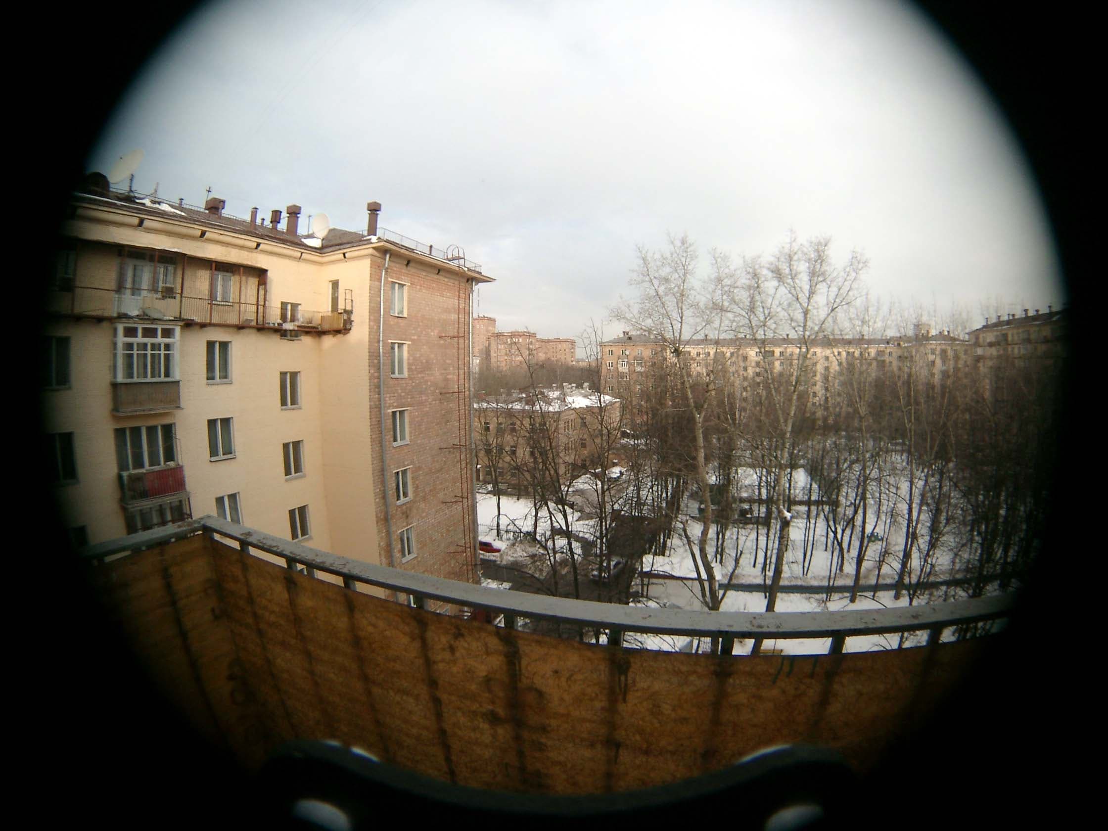 ![]() | Casio QV4000. Окуляр — Юпитер-3. Объектив — Пеленг. Угол зрения — 120 градусов. Замерялся угол между крайними видимыми объектами с точки съемки. f:2, 1/670 с. При щелчке мышью откроется изображение 2240×1680 пикселей, размер файла 210 КБ |