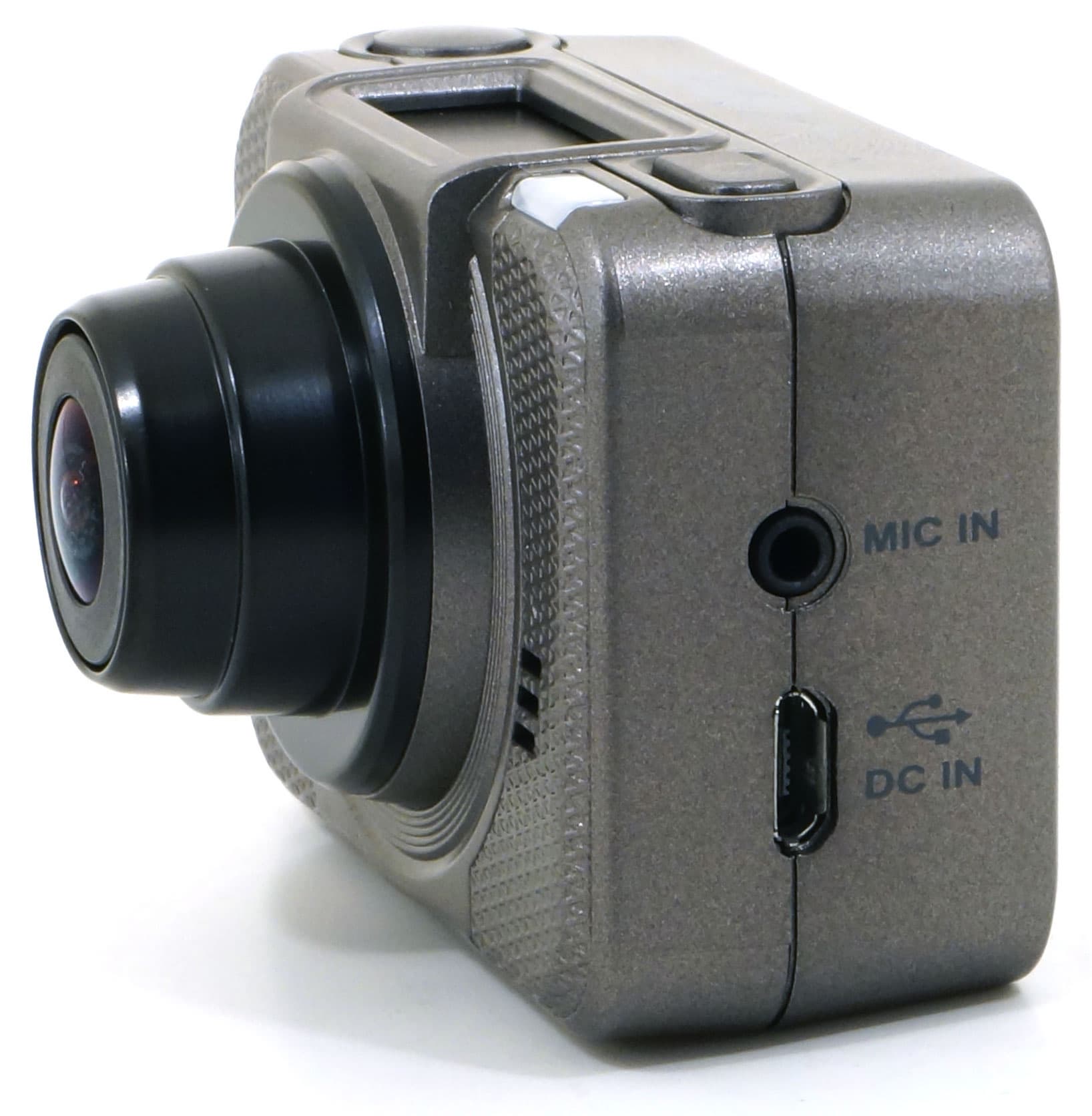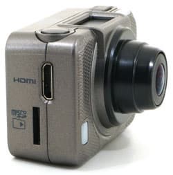 Интерфейсы и разъемы камеры расположены на двух боковых сторонах корпуса: микрофонный вход и порт USB слева, выход Mini-HDMI и слот карты памяти справа. Еще раз обратим внимание на наличие микрофонного входа — это редкий случай в мире миниатюрных камер.